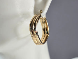 Pr of Womens Vintage Estate 14K Yellow Gold Modernist Hoop Earrings 2.4g E3177