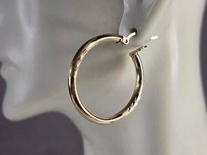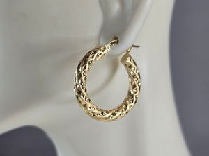 Pr Womens Vintage Estate 10K Gold Etched Hoop Earrings, 2.7g E4229