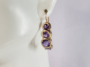 Pr Womens Vintage Estate 14K Gold Amethyst Earrings 4.9g E2981
