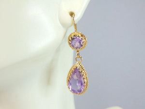 Pr Womens Vintage Estate 14K Gold Amethyst Earrings 5.4g E997