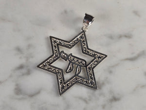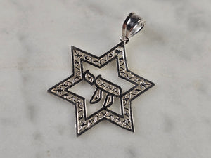 Sterling Silver Jewish Judaica Star of David Chai Pendant, 3.6g E1756