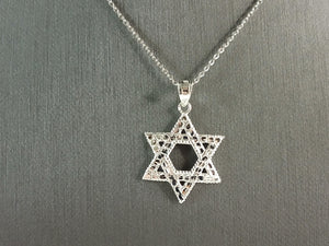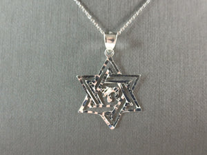 Sterling Silver Jewish Judaica Star of David Pendant Necklace, 2.7g E4299