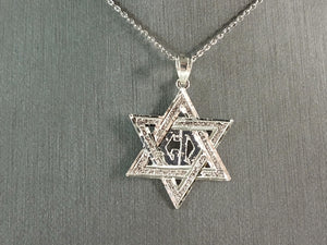 Sterling Silver Jewish Judaica Star of David Chai Pendant Necklace, 2.5g E6896