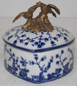Decorative Porcelain Floral Vanity Trinket Box w/ Bronze Fairy