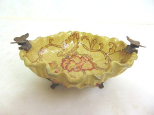 Decorative Victorian Art Nouveau Style Porcelain Butterfly Soap Dish w/ Bronze