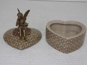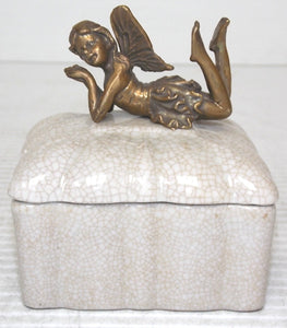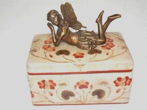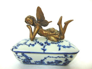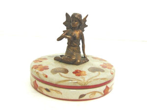 Decorative Victorian Art Nouveau Style Porcelain Vanity Box w/ Fairy