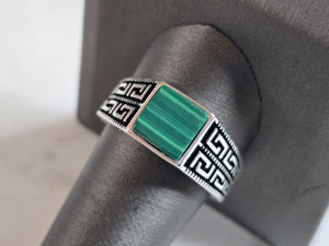 Mens Estate Sterling Silver Modernist Malachite Ring 5.9g E4491