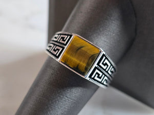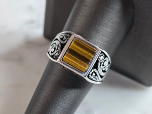Mens Estate Sterling Silver Modernist Tigers Eye Ring 12.3g E4496