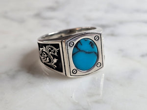 Mens Estate Sterling Silver Modernist Turquoise Ring 12.4g E4494