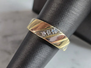 Mens Vintage Estate 14K Tri Colored Gold Diamond Ring 4.1g E7377