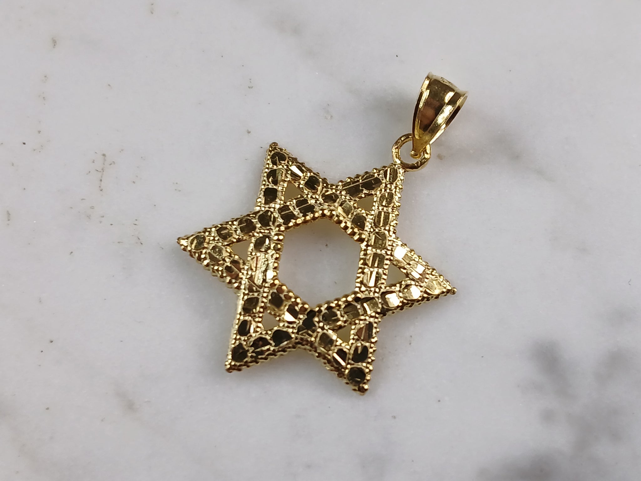A STERLING SILVER GOLD TONE STAR OF DAVID PENDANT WITH NECKLACE. THE PENDANT WITH NECKLACE WEIGHS 2.7g. THE NECKLACE MEASURES 18" LONG, AND THE PENDANT MEASURES 1 1/8" LONG BY 3/4" WIDE. MAKES A GREAT GIFT FOR THAT SOMEONE SPECIAL. ANY QUESTIONS, PLEASE ASK. BE SURE TO CHECK OUT OUR OTHER ITEMS FOR SALE.