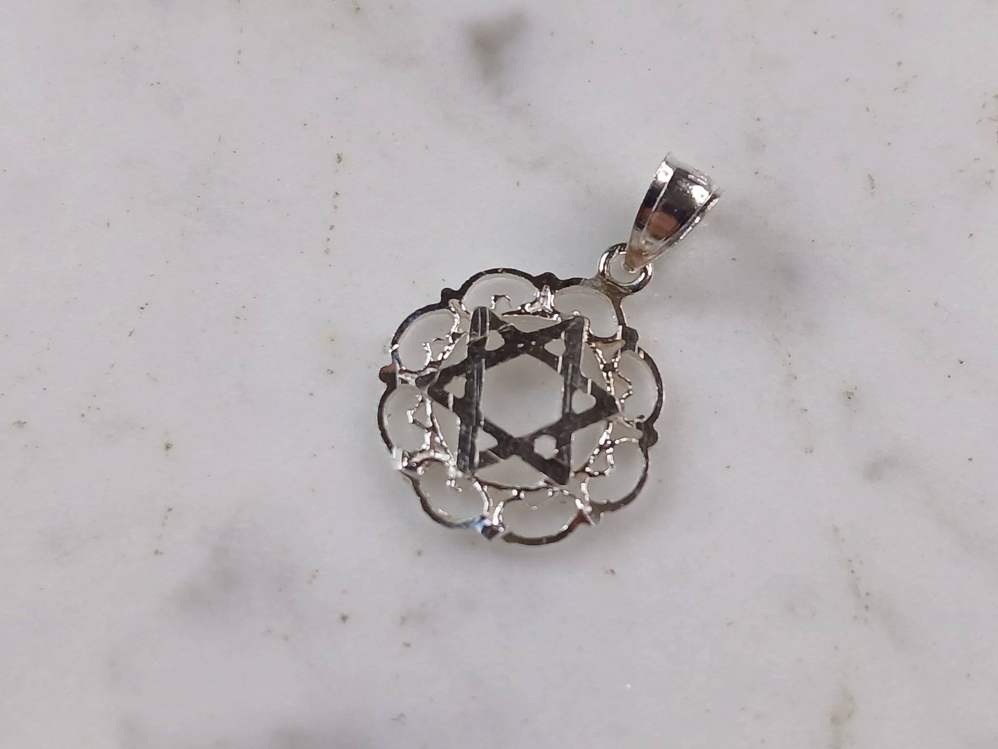 Sterling Silver Jewish Judaica Star of David Pendant Necklace, 2.5g E7498