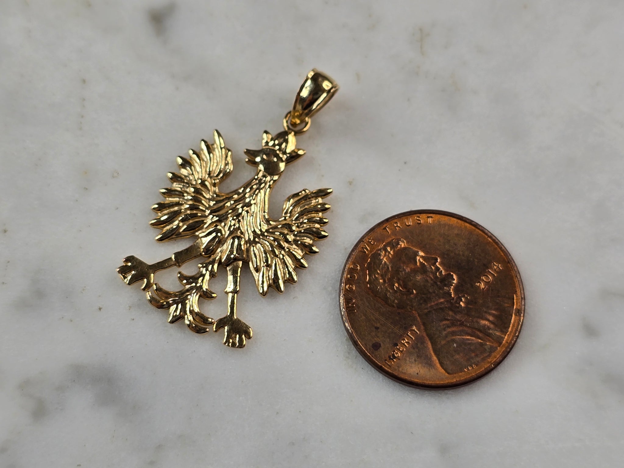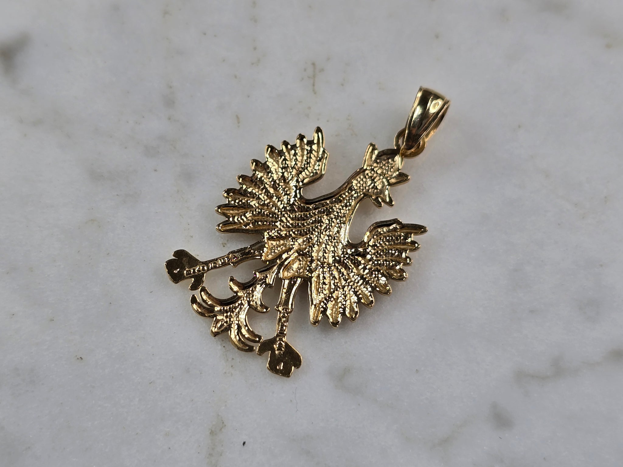 A VINTAGE ESTATE 14K YELLOW GOLD POLISH EAGLE PENDANT. THE TOTAL WEIGHT IS 1.9g. THE PENDANT MEASURES 1 1/4" LONG BY 5/8" WIDE. MAKES A GREAT GIFT FOR THAT SOMEONE SPECIAL. IF ANY QUESTIONS, PLEASE ASK. BE SURE TO CHECK OUT SOME OF MY OTHER GREAT ITEMS FOR SALE.