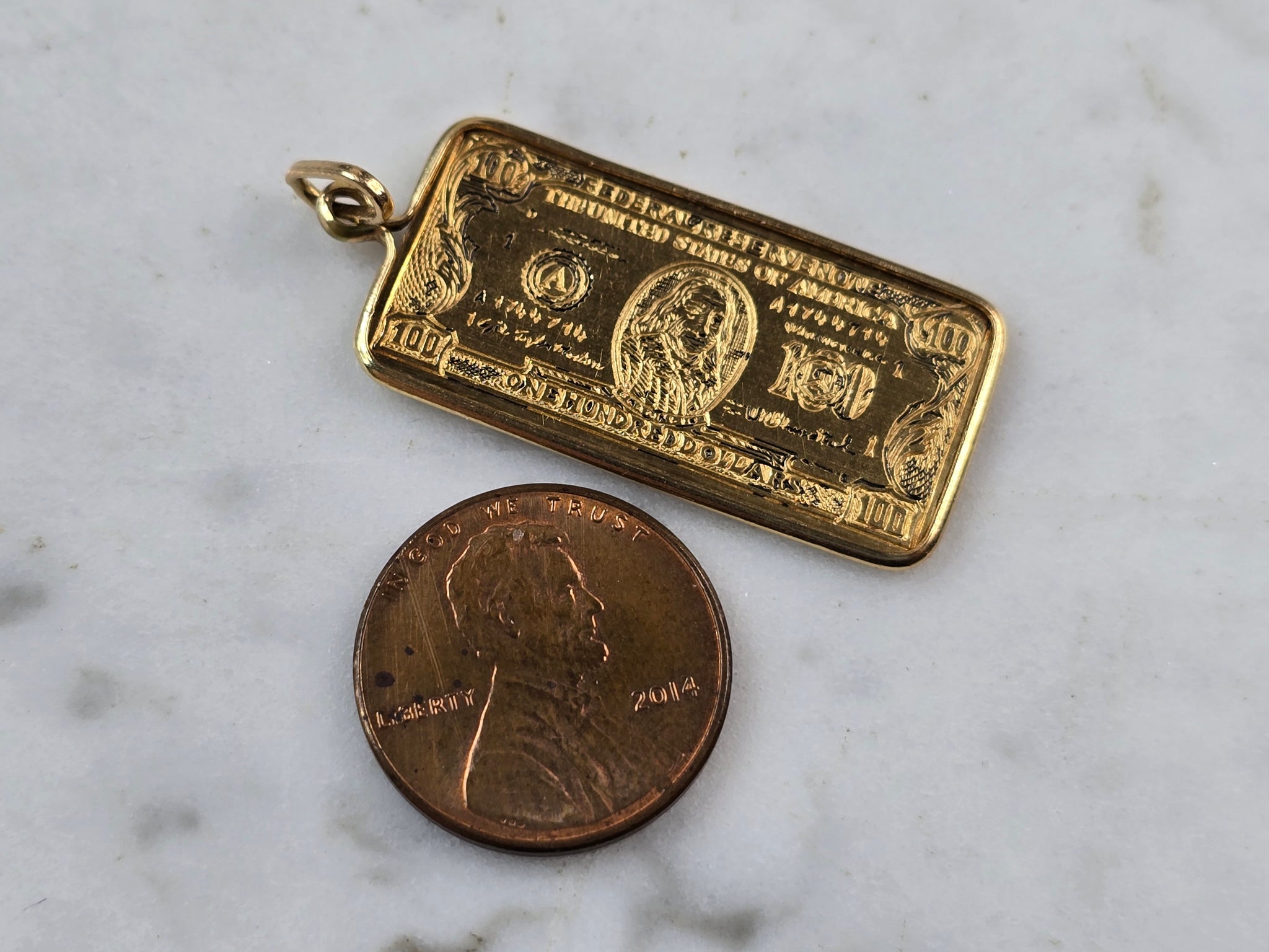 Vintage Estate 18k Yellow Gold Hundred Dollar Bill Pendant 5.0g E3423