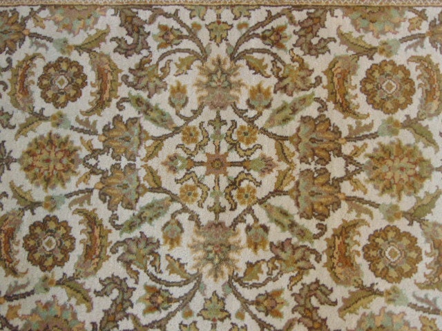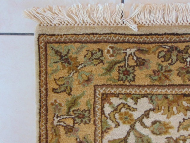 A BEAUTIFUL VINTAGE ESTATE HANDMADE INDO RUG THAT MEASURES 3' BY 4' 11" . RUG IS MADE FROM 100% WOOL. IF THERE ARE ANY ISSUES PLEASE CONTACT US, WE'RE ALWAYS HAPPY TO TRY TO HELP YOU OUT AS BEST AS WE CAN. APPRAISED $2000