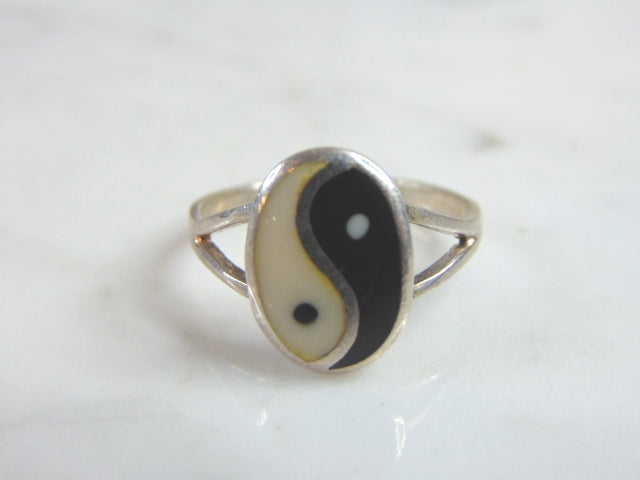 FOR SALE IS THIS LOVELY VINTAGE ESTATE STERLING SILVER CHINESE YIN & YANG RING. THE TOTAL WEIGHT OF THE RING IS 3.0g. THE RING FACE MEASURES 5/8" BY 1/2". THE RING SIZE IS A 8.25. MAKES A GREAT GIFT FOR THAT SPECIAL SOMEONE. IF ANY QUESTIONS, PLEASE ASK. BE SURE TO CHECK OUT SOME OF OUR OTHER GREAT ITEMS FOR SALE.