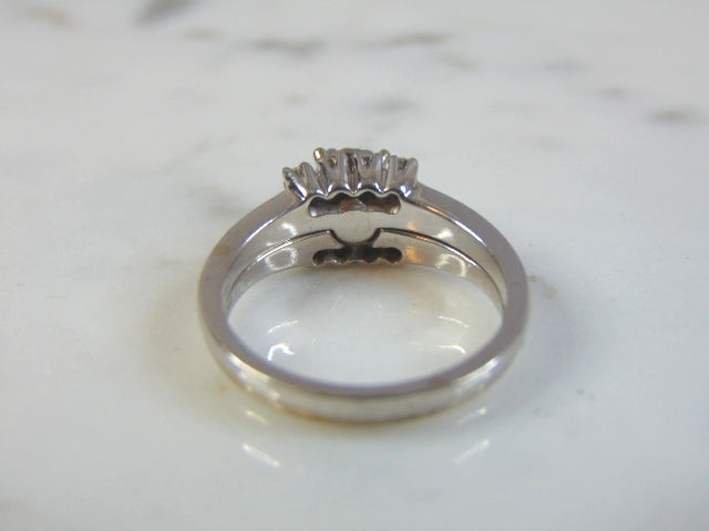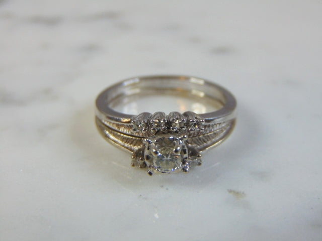 FOR SALE IS THIS VINTAGE ESTATE 14K WHITE GOLD DIAMOND ENGAGEMENT RING SET.  THE RING IS A SIZE 5.5 AND WEIGHS 4.4g.  THERE ARE ABOUT .29cts OF DIAMONDS.   RING MAKES A BEAUTIFUL GIFT FOR THAT SOMEONE SPECIAL.  ANY OTHER QUESTIONS, PLEASE ASK.  BE SURE TO CHECK OUT SOME OF MY OTHER GREAT ITEMS UP FOR SALE. THANK YOU.