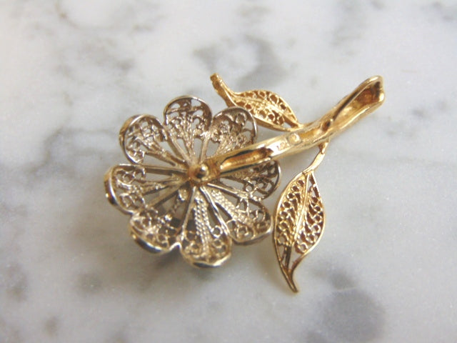 Vintage Estate Women's 14K White & Yellow Gold Flower Pendant 5.9g E1104