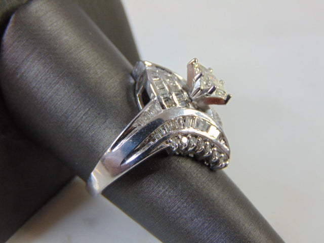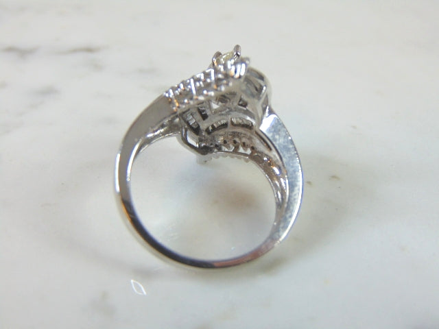FOR SALE IS THIS EXQUISITE WOMENS VINTAGE ESTATE STERLING SILVER DIAMOND RING. THE RING WEIGHS 6.6g WITH THE DIAMONDS. THE SIZE OF THE RING IS A 8.25. THE CARAT WEIGHT OF THE CENTER DIAMOND IS ABOUT .5cts. ALL TOTAL THERE ABOUT 1.5cts OF DIAMONDS IN THIS RING.