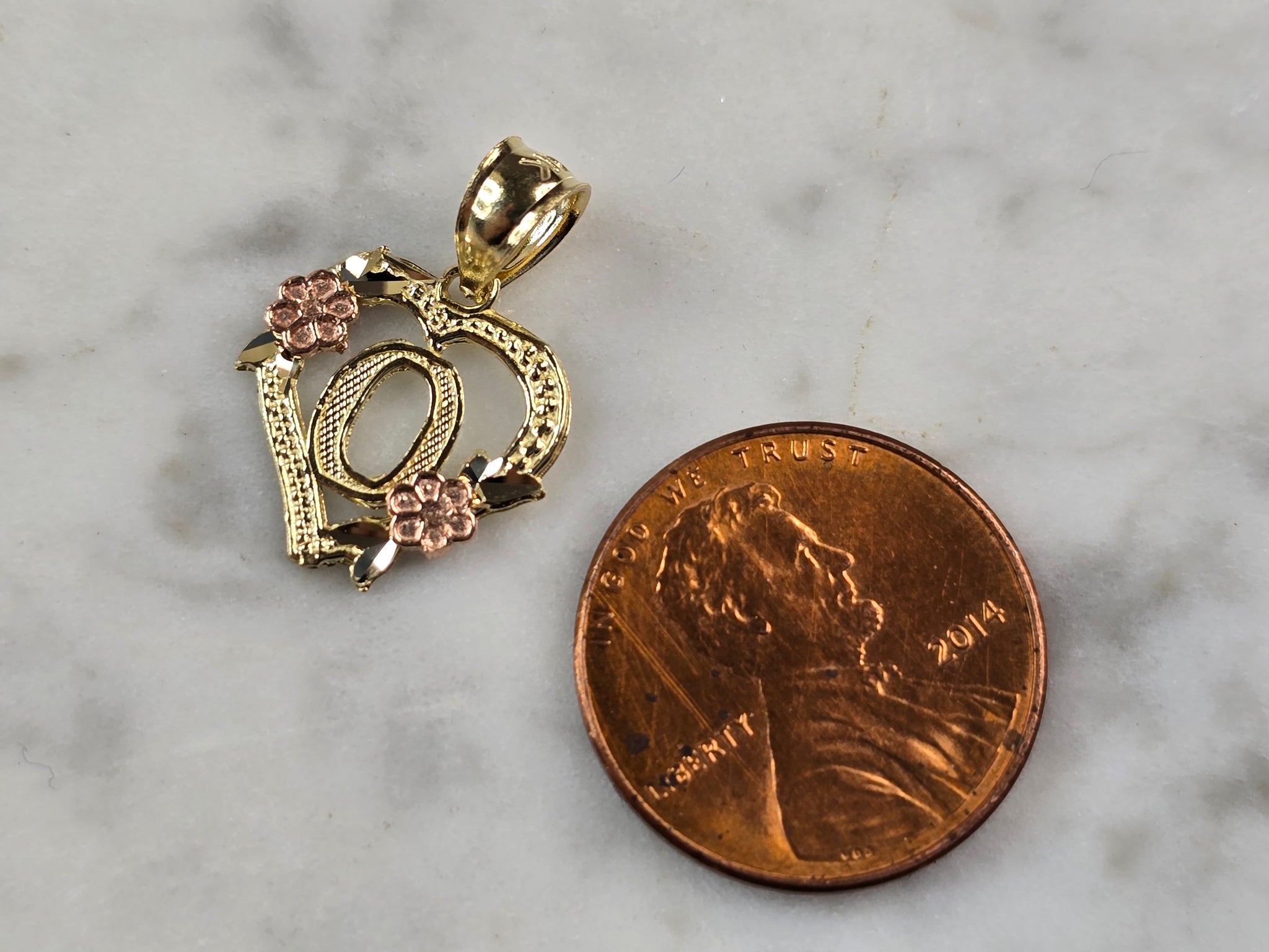 A WOMENS 10K YELLOW & ROSE GOLD "O" HEART PENDANT. PENDANT MEASURES 3/4" LONG BY 5/8" WIDE. TOTAL WEIGHT OF THE PENDANT IS 0.9g. WOULD MAKE A LOVELY GIFT FOR THAT SOMEONE SPECIAL. ANY QUESTIONS PLEASE ASK. BE SURE TO CHECK OUT SOME OF MY OTHER GREAT ITEMS UP FOR SALE. THANK YOU