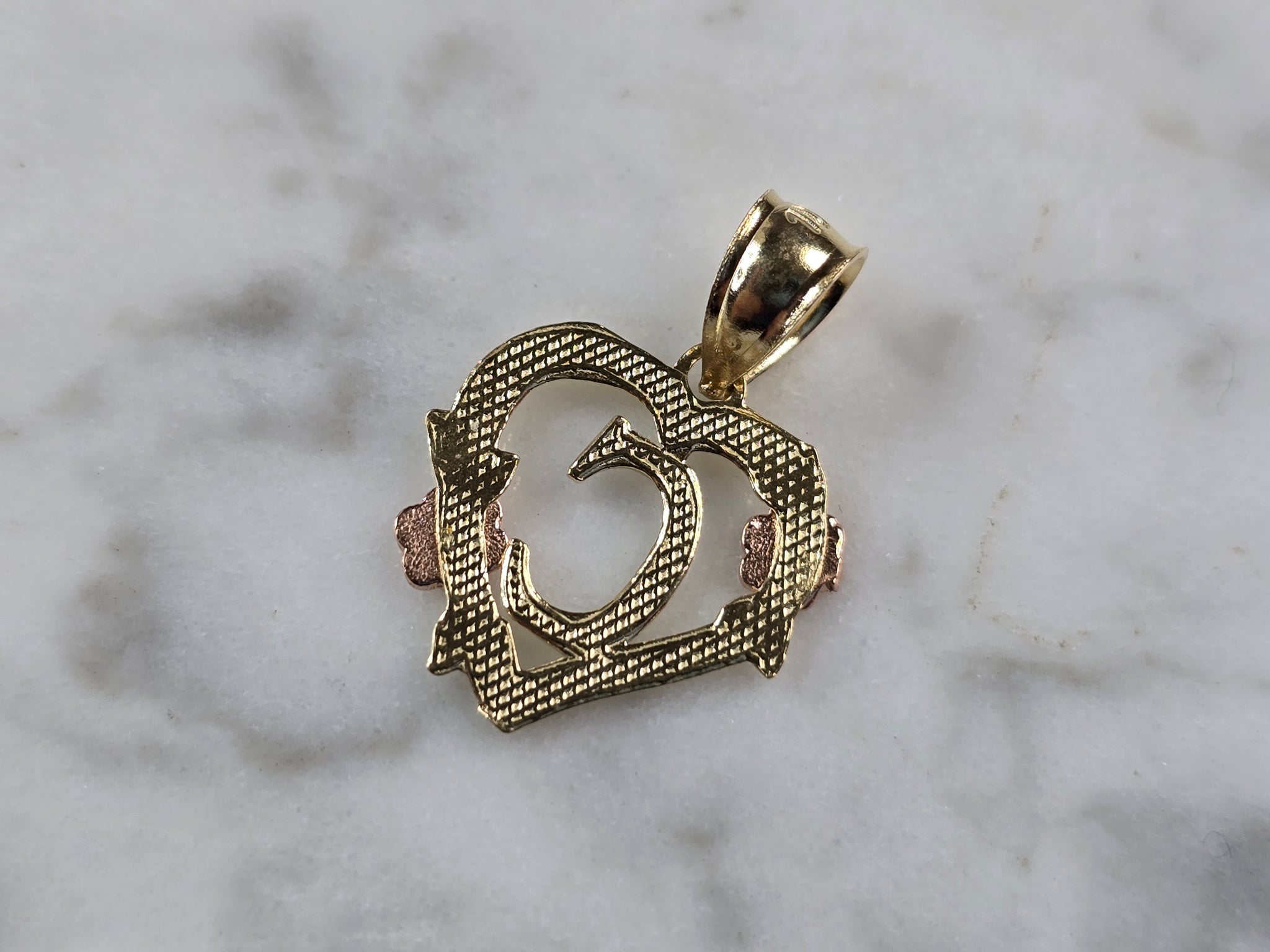 A WOMENS 10K YELLOW & ROSE GOLD "C" HEART PENDANT. PENDANT MEASURES 3/4" LONG BY 5/8" WIDE. TOTAL WEIGHT OF THE PENDANT IS 0.9g. WOULD MAKE A LOVELY GIFT FOR THAT SOMEONE SPECIAL. ANY QUESTIONS PLEASE ASK. BE SURE TO CHECK OUT SOME OF MY OTHER GREAT ITEMS UP FOR SALE. THANK YOU