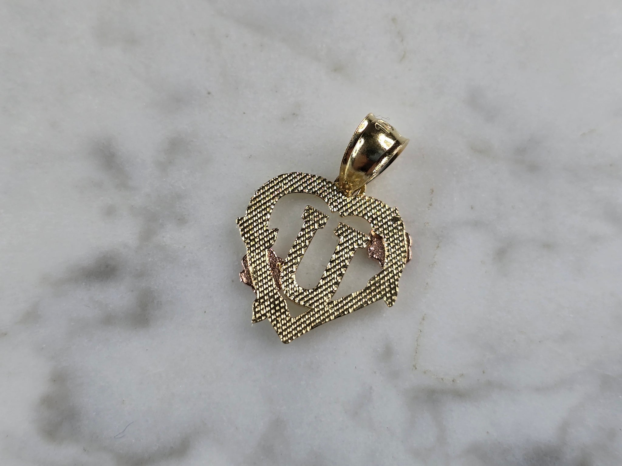 A WOMENS 10K YELLOW & ROSE GOLD "U" HEART PENDANT. PENDANT MEASURES 3/4" LONG BY 5/8" WIDE. TOTAL WEIGHT OF THE PENDANT IS 0.9g. WOULD MAKE A LOVELY GIFT FOR THAT SOMEONE SPECIAL. ANY QUESTIONS PLEASE ASK. BE SURE TO CHECK OUT SOME OF MY OTHER GREAT ITEMS UP FOR SALE. THANK YOU