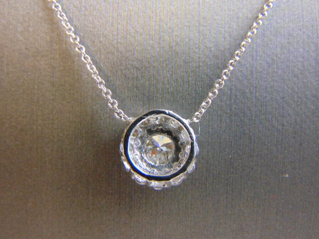 FOR SALE IS A VINTAGE ESTATE 14K WHITE GOLD & DIAMOND NECKLACE. THE NECKLACE MEASURES 18 1/4" LONG BY 3/8" WIDE AND WEIGHS 3.5g. THERE ARE APPROXIMATELY 1.2cts OF DIAMONDS. THE CENTER DIAMOND IS ABOUT .60cts BY ITSELF. NOT AN OFFICIAL GRADE, BUT IN OUR OPINION I WOULD PUT THE DIAMONDS AT A G-H IN COLOR, AND AN SI2 FOR THE CLARITY. A GORGEOUS PIECE THAT WOULD MAKE A LOVELY GIFT FOR THAT SOMEONE SPECIAL. ANY OTHER QUESTIONS, PLEASE ASK. BE SURE TO CHECK OUT SOME OF MY OTHER GREAT ITEMS UP FOR SALE. THANK YOU.