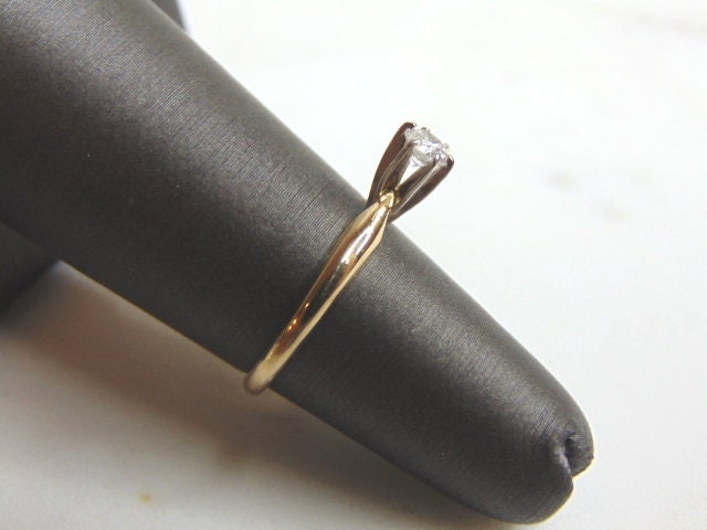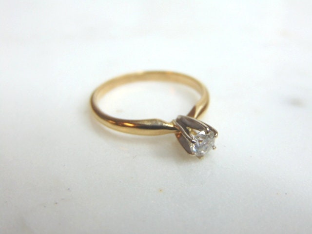 FOR SALE IS THIS WOMENS VINTAGE ESTATE 14K GOLD SOLITAIRE DIAMOND ENGAGEMENT RING. THE RING IS A SIZE 4.75 AND WEIGHS 1.7g. THE DIAMOND IS ABOUT .20cts. THE RING MAKES A BEAUTIFUL, GIFT FOR THAT SOMEONE SPECIAL. ANY OTHER QUESTIONS, PLEASE ASK. BE SURE TO CHECK OUT SOME OF MY OTHER GREAT ITEMS UP FOR SALE. THANK YOU