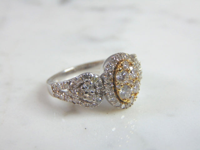 FOR SALE IS THIS 14K WHITE & YELLOW GOLD DIAMOND RING WITH ABOUT 1.12cts OF DIAMONDS IN IT. THE RING WEIGHS 5.6g. THE SIZE OF THE RING IS A 6.5. THIS MAKES A LOVELY GIFT FOR THAT SOMEONE SPECIAL. ANY QUESTIONS PLEASE, DO NOT HESITATE TO ASK. BE SURE TO CHECK OUT SOME OF MY OTHER GREAT ITEMS UP FOR SALE. THANK YOU.