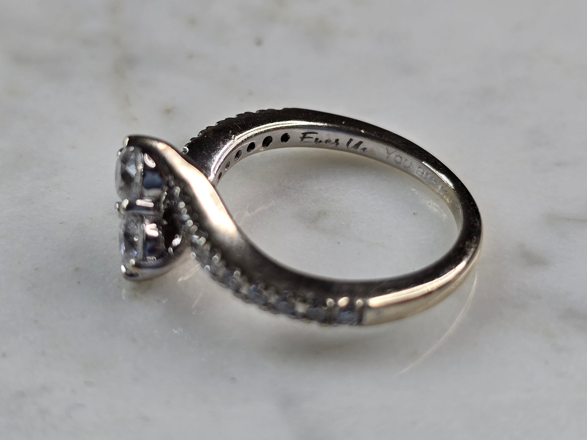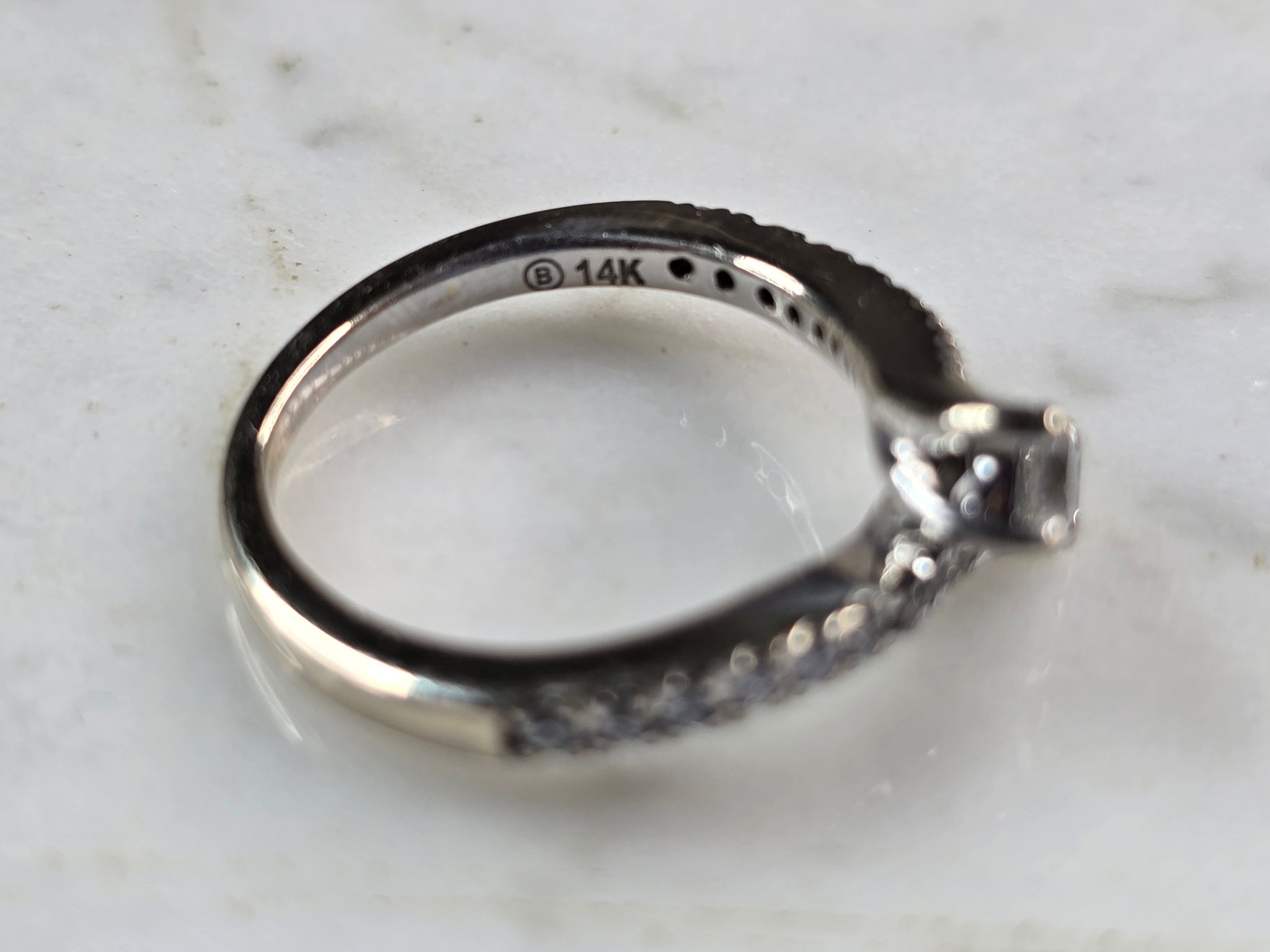 A WOMENS VINTAGE ESTATE 14K WHITE GOLD EVER US DIAMOND ENGAGEMENT RING SET. RING IS A SIZE 5.25, AND WEIGH 5.5g. THE CENTER DIAMONDS TOTAL ABOUT 0.30cs WITH 20 TINY DIAMONDS. THE SPACER RING HAS 29 TINY DIAMONDS. THE WIDTH TOGETHER IS 3/8". ANY QUESTIONS PLEASE DO NOT HESITATE TO ASK.