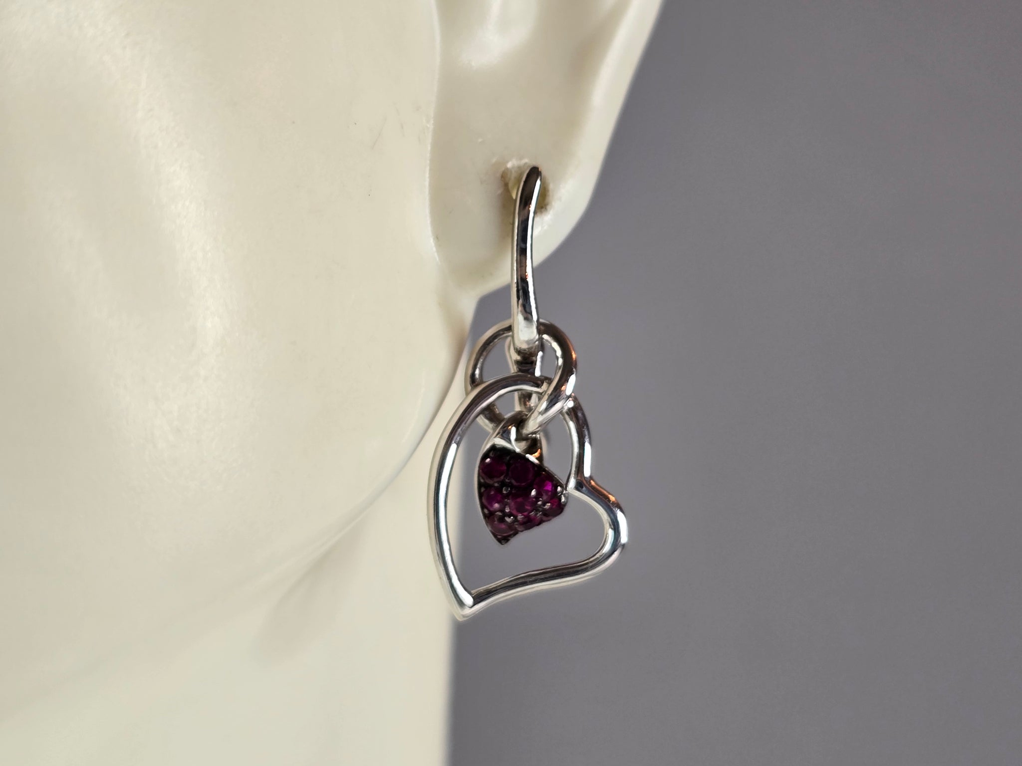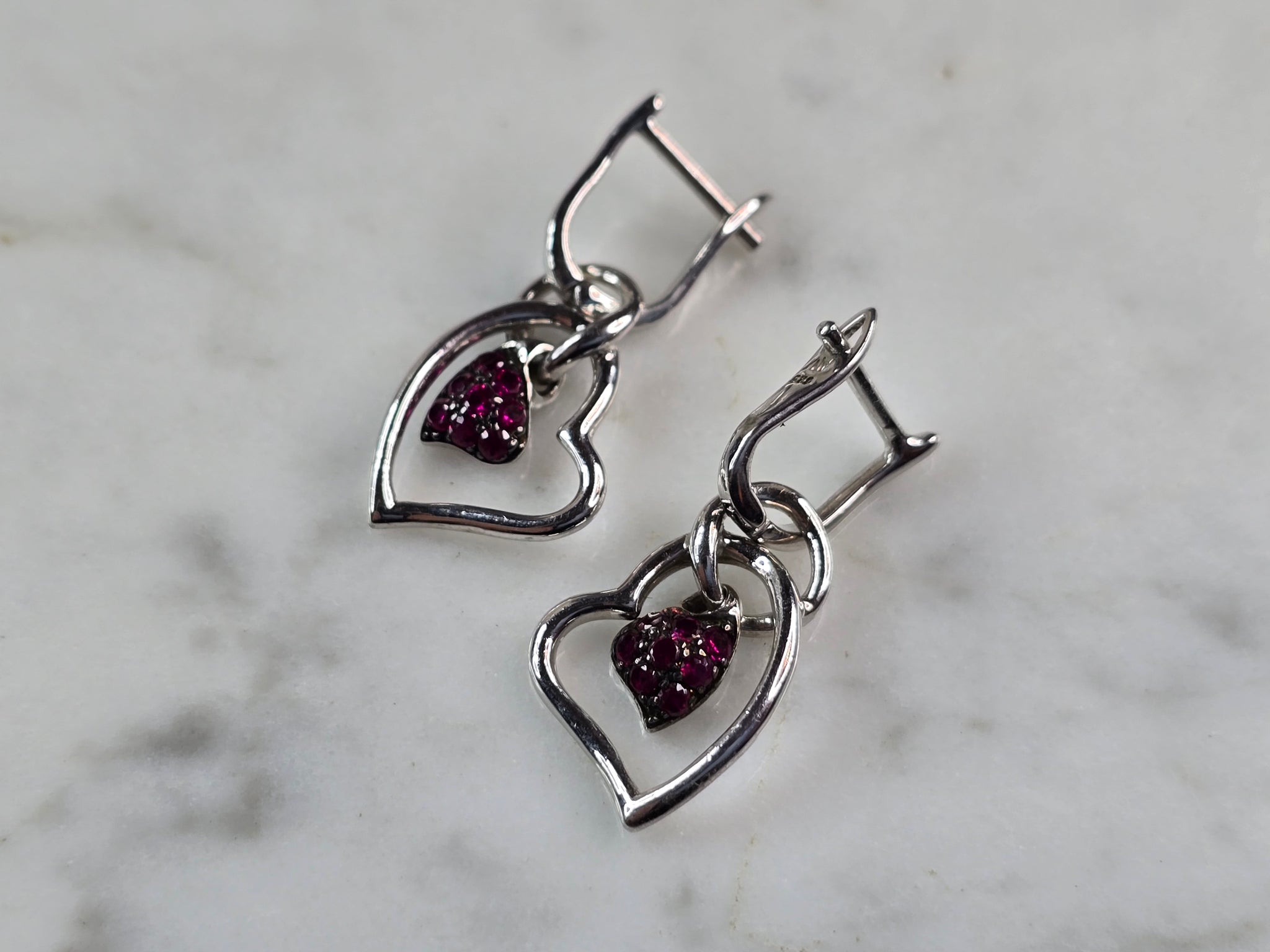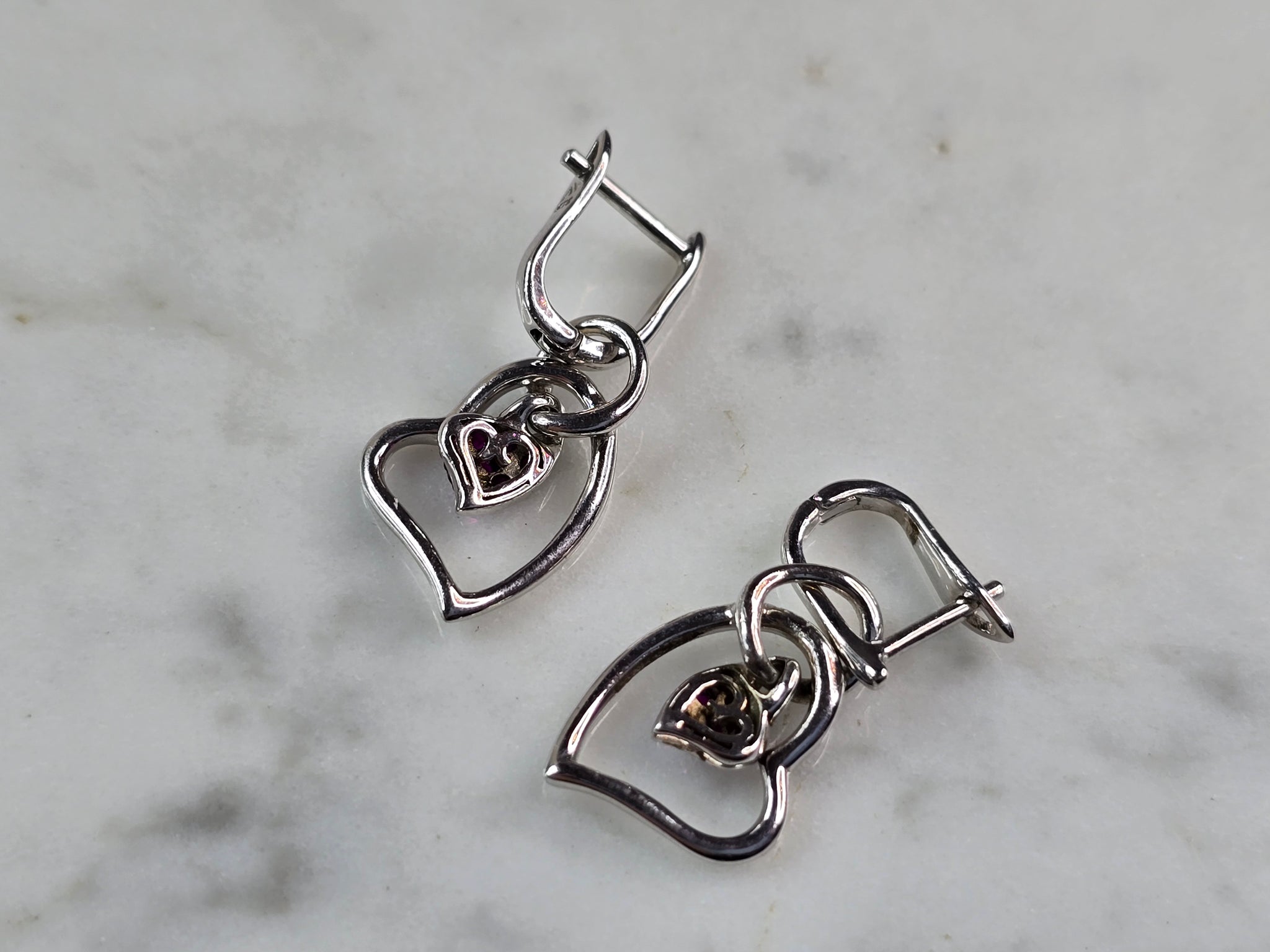 A PAIR OF WOMENS ESTATE STERLING SILVER AMETHYST COLORED EARRINGS. EARRINGS WEIGH 2.7g, AND MEASURE 1" LONG BY 1/2" WIDE. ANY QUESTIONS, PLEASE DO NOT HESITATE TO ASK. BE SURE TO CHECK OUT SOME OF MY OTHER GREAT ITEMS UP FOR SALE. THANK YOU