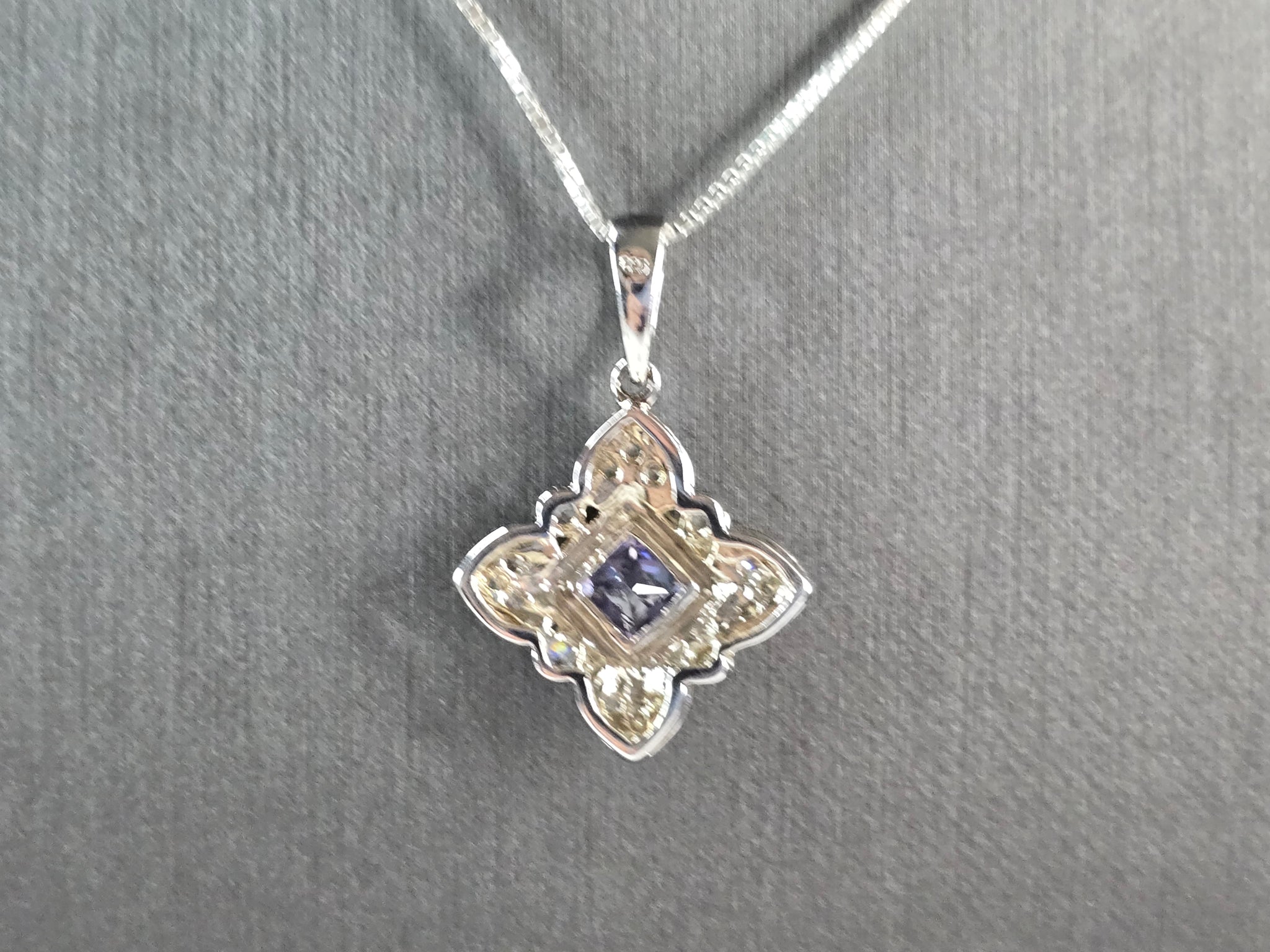A WOMENS VINTAGE ESTATE STERLING SILVER AMETHYST COLORED STONE PENDANT WITH NECKLACE. TOGETHER NECKLACE AND PENDANT WEIGHS 6.8g. PENDANT MEASURES 1 1/4" LONG BY 7/8" WIDE. NECKLACE MEASURES 18". NOT SURE IF STONE IS NATURAL OR MAN MADE. MAKES A GREAT GIFT FOR THAT SOMEONE SPECIAL. ANY QUESTIONS, PLEASE ASK. BE SURE TO CHECK OUT OUR OTHER ITEMS FOR SALE.