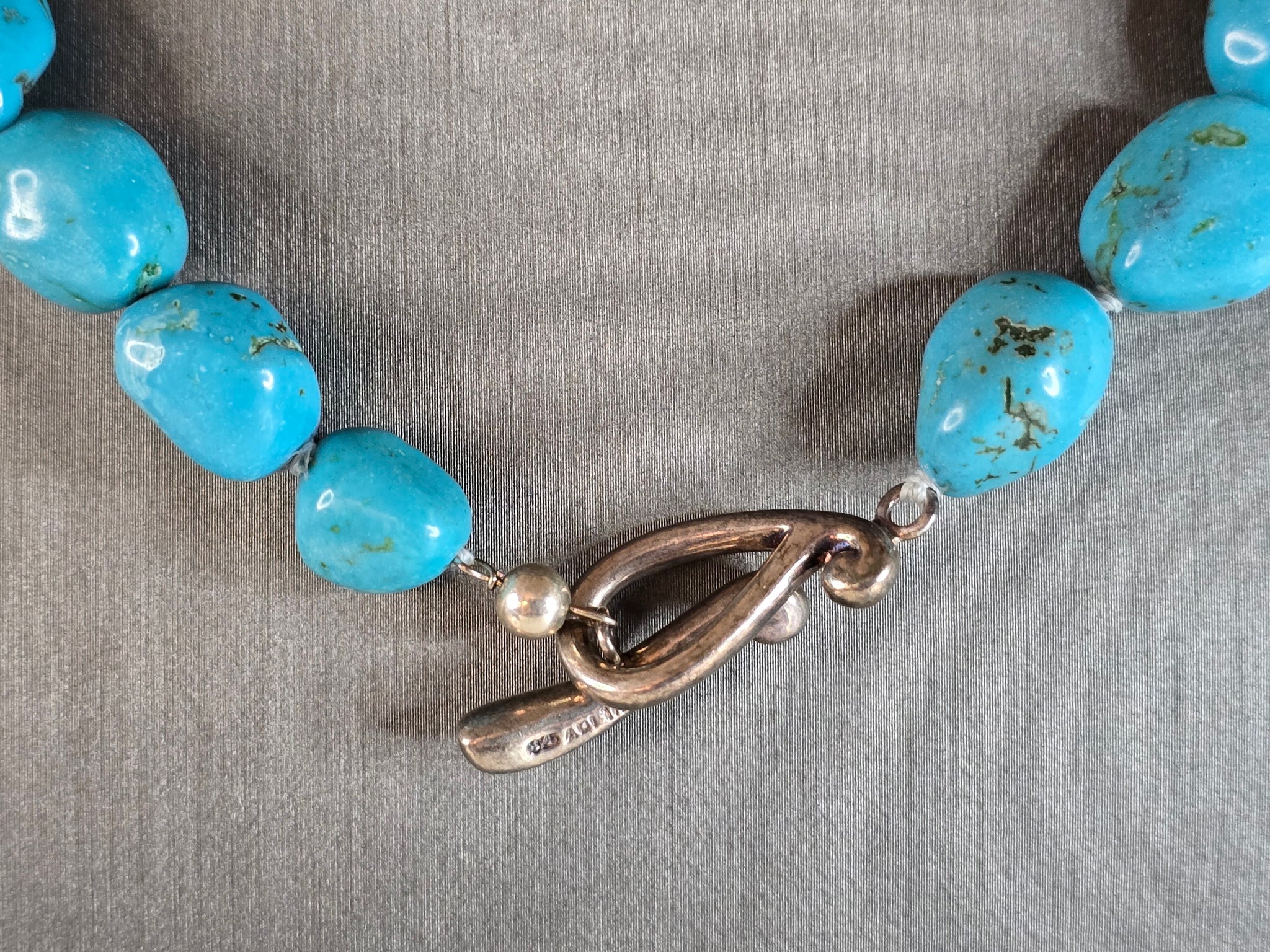 A BEAUTIFUL WOMENS VINTAGE ESTATE STERLING SILVER CROSS PENDANT & TURQUOISE NECKLACE. TOGETHER THEY WEIGH 75.0g. NECKLACE MEASURES 17" LONG, AND PENDANT MEASURES 2" BY 1 1/4". WOULD MAKE A GREAT GIFT FOR THAT SPECIAL SOMEONE. ANY QUESTIONS PLEASE DO NOT HESITATE TO ASK. BE SURE TO CHECK OUT SOME OF MY OTHER GREAT ITEMS UP FOR SALE. THANK YOU.