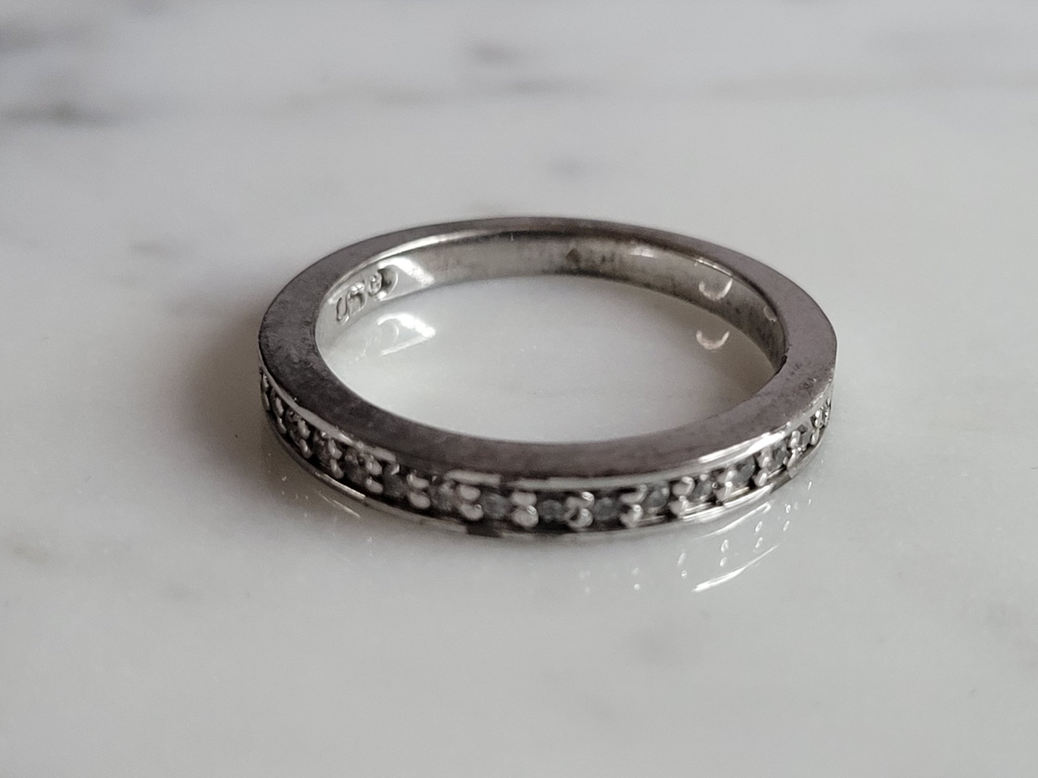 A WOMENS ESTATE STERLING SILVER CZ RING THAT WEIGHS 2.4g. THE RING IS A SIZE 6.25, AND MEASURES ABOUT 1/8" WIDE. THIS WOULD MAKE A NICE GIFT FOR THAT SOMEONE SPECIAL. ANY QUESTIONS PLEASE DO NOT HESITATE TO ASK. BE SURE TO CHECK OUT SOME OF MY OTHER GREAT ITEMS UP FOR SALE. THANK YOU