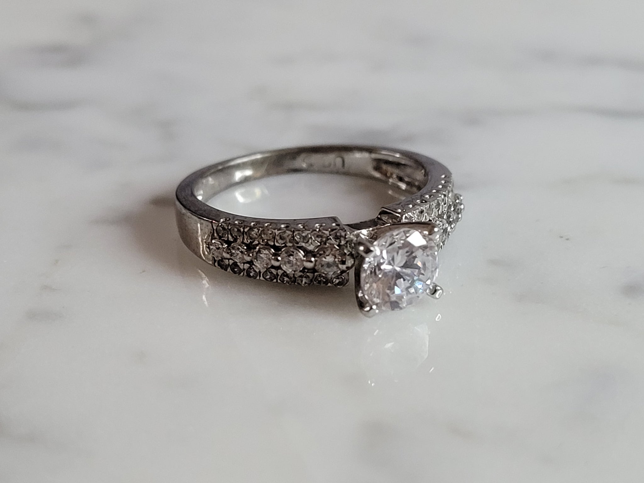 A WOMENS ESTATE STERLING SILVER CZ RING THAT WEIGHS 3.0g. THE RING IS A SIZE 6.75, AND MEASURES ABOUT 1/4" WIDE. THIS WOULD MAKE A NICE GIFT FOR THAT SOMEONE SPECIAL. ANY QUESTIONS PLEASE DO NOT HESITATE TO ASK. BE SURE TO CHECK OUT SOME OF MY OTHER GREAT ITEMS UP FOR SALE. THANK YOU.
