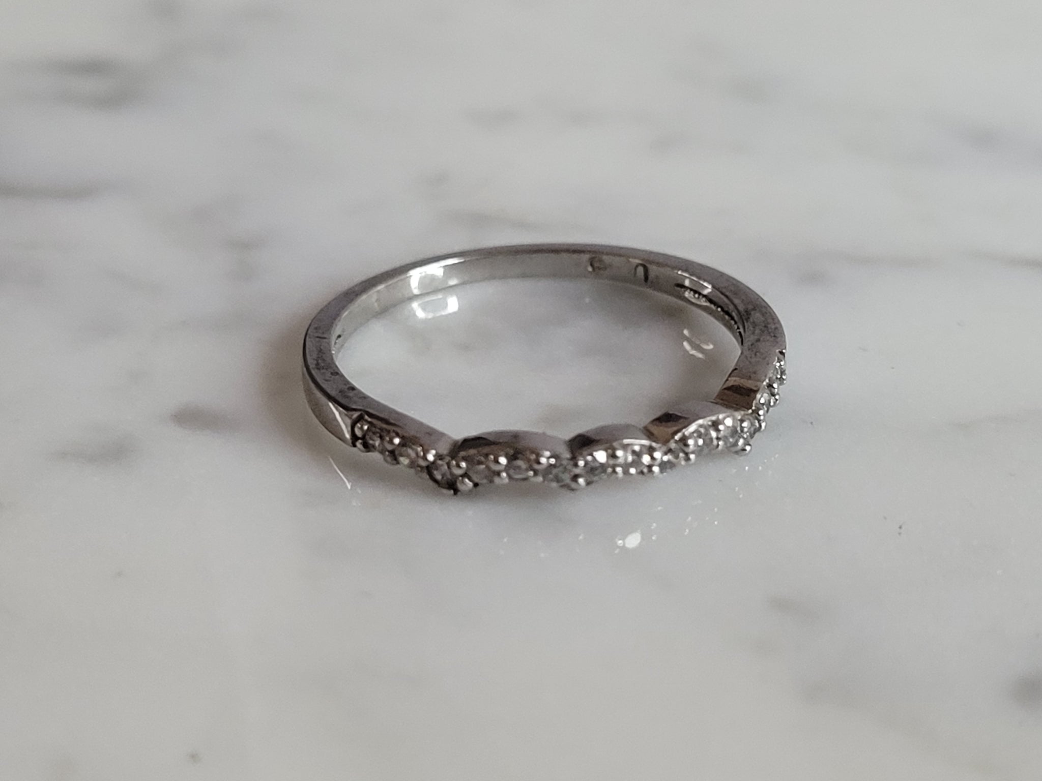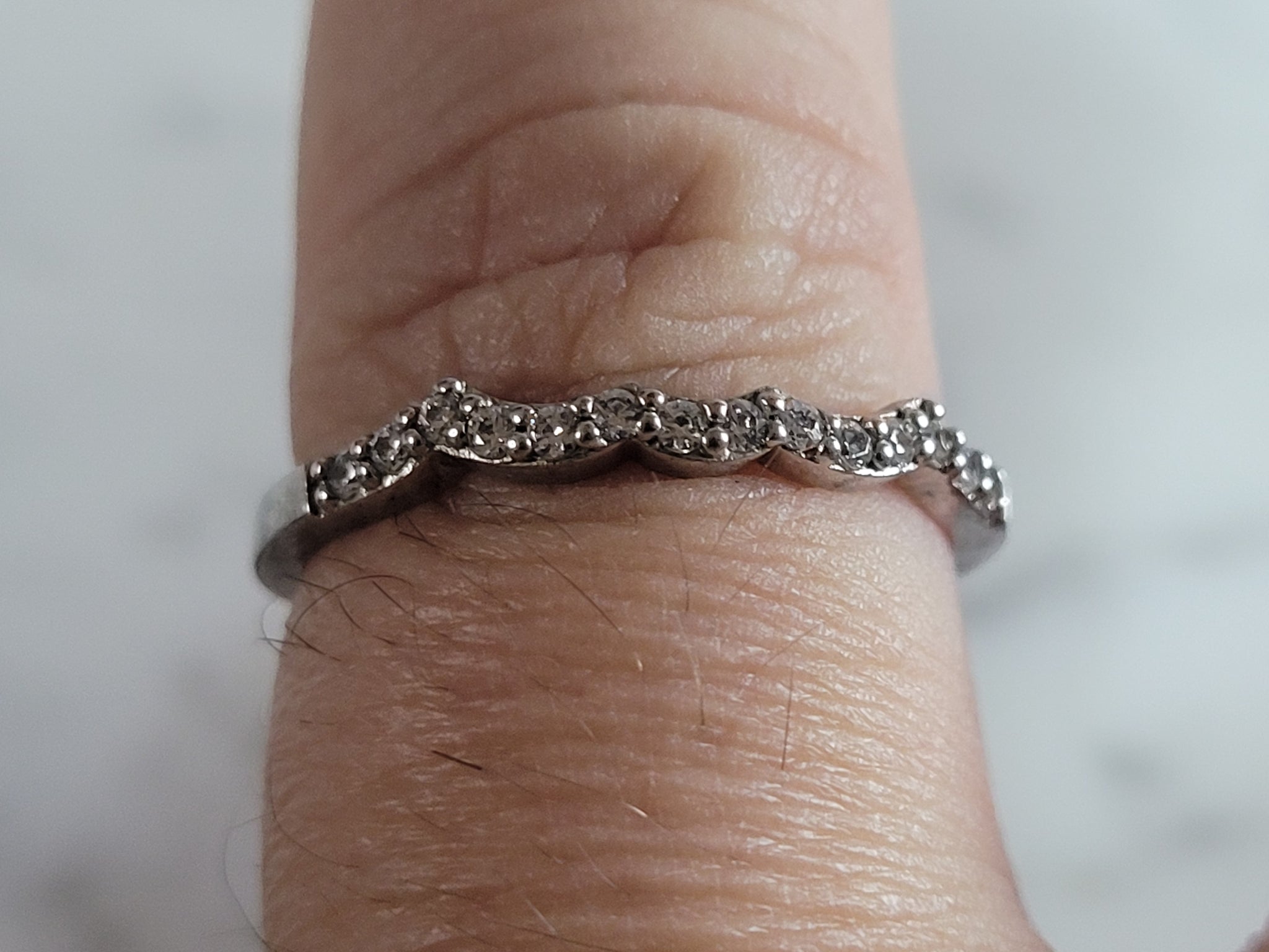 A WOMENS ESTATE STERLING SILVER CZ SPACER RING THAT WEIGHS 1.0g. THE RING IS A SIZE 7.0, AND MEASURES ABOUT 1/8" WIDE. THIS WOULD MAKE A NICE GIFT FOR THAT SOMEONE SPECIAL. ANY QUESTIONS PLEASE DO NOT HESITATE TO ASK. BE SURE TO CHECK OUT SOME OF MY OTHER GREAT ITEMS UP FOR SALE. THANK YOU