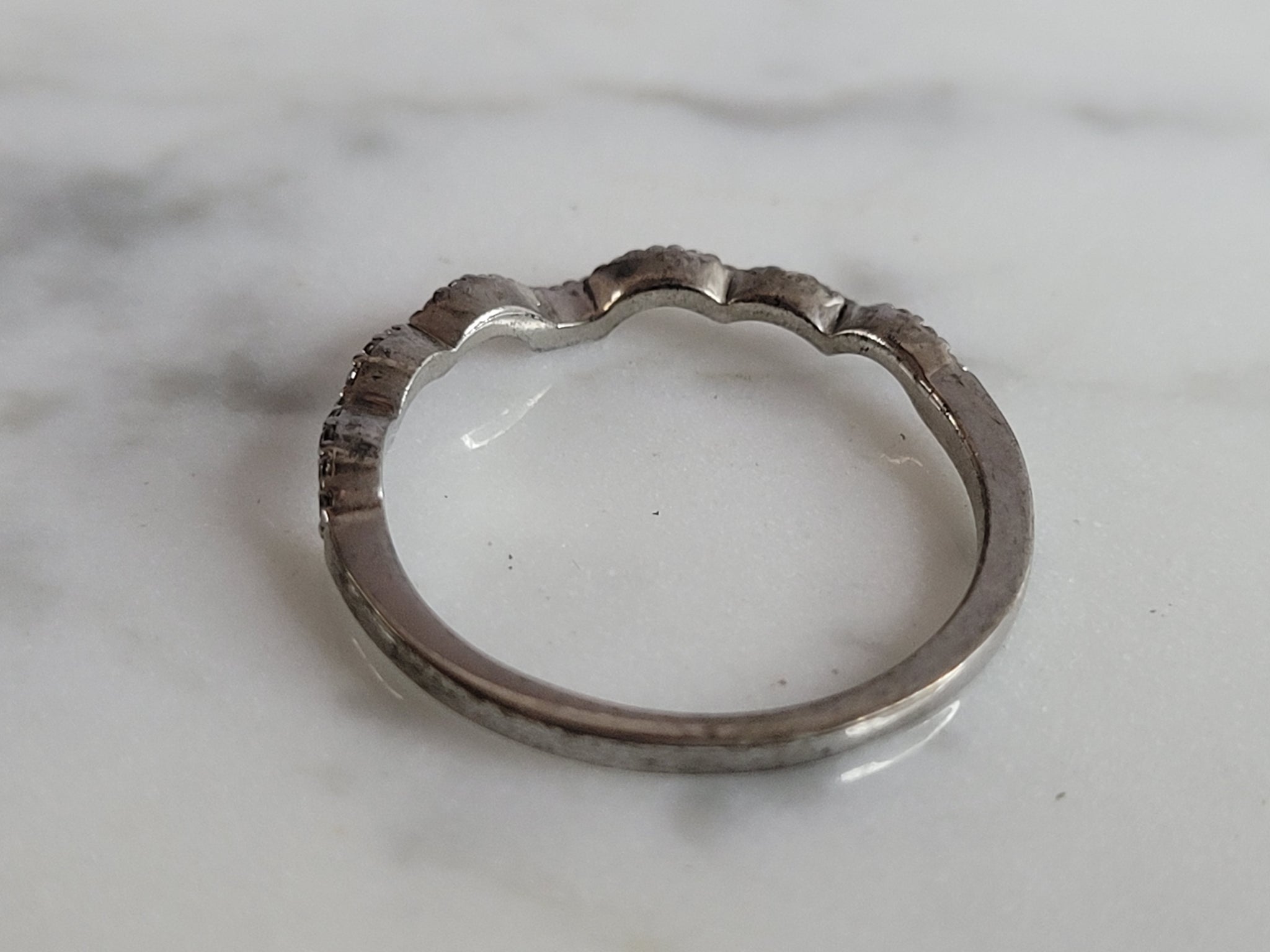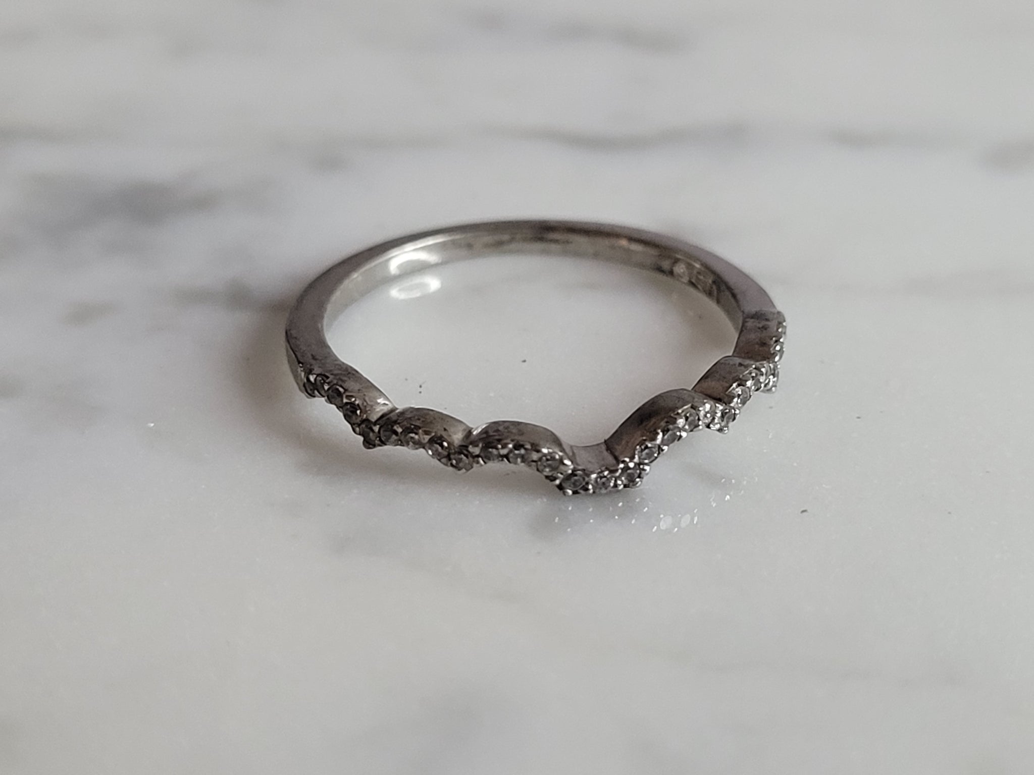 A WOMENS ESTATE STERLING SILVER CZ SPACER RING THAT WEIGHS 1.1g. THE RING IS A SIZE 6.75, AND MEASURES ABOUT 1/8" WIDE. THIS WOULD MAKE A NICE GIFT FOR THAT SOMEONE SPECIAL. ANY QUESTIONS PLEASE DO NOT HESITATE TO ASK. BE SURE TO CHECK OUT SOME OF MY OTHER GREAT ITEMS UP FOR SALE. THANK YOU