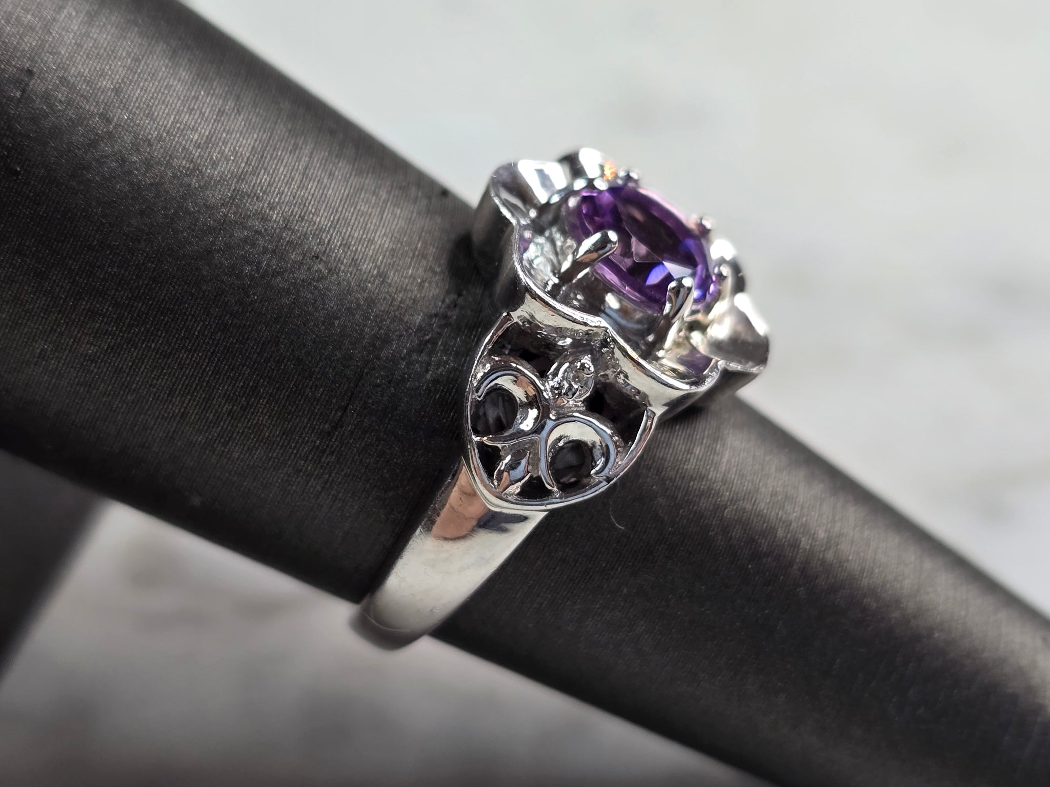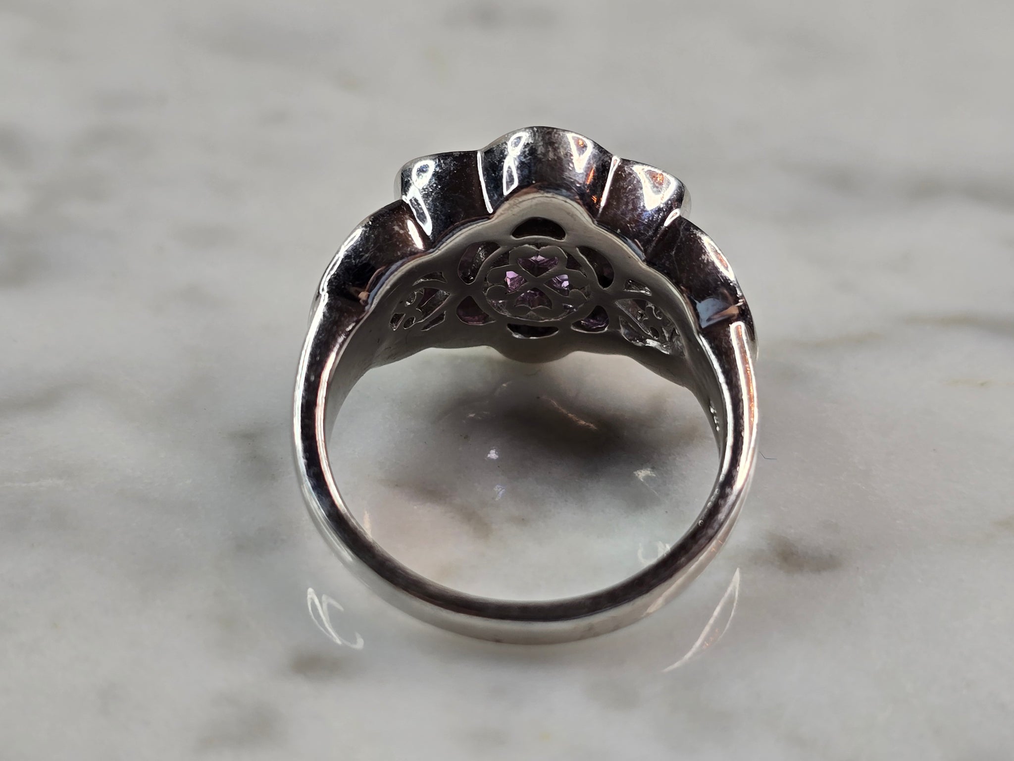 Womens Estate Sterling Silver Floral Amethyst Ring 6.2g E1504