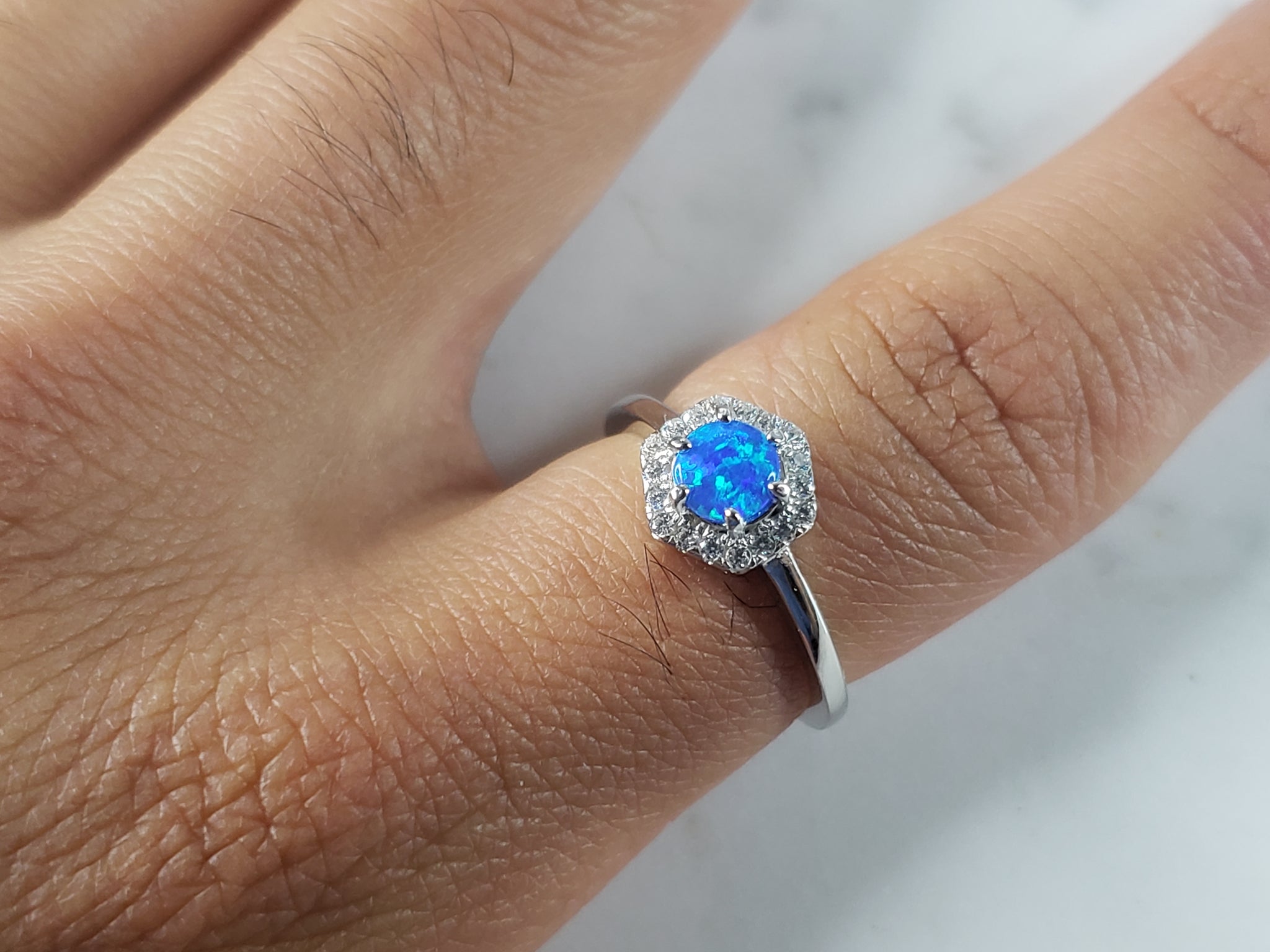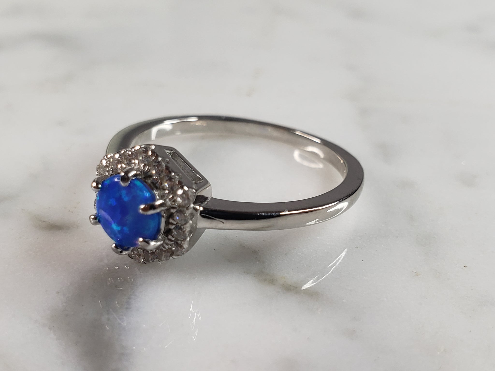 A WOMENS ESTATE STERLING SILVER MODERNIST BLUE OPAL COLORED RING. THE RING IS A SIZE 7.0 AND WEIGHS 2.3g. WIDTH OF RING MEASURES 3/8". NOT SURE IF STONE IS NATURAL OR MAN MADE. THE RING MAKES A BEAUTIFUL GIFT FOR THAT SOMEONE SPECIAL. ANY OTHER QUESTIONS, PLEASE ASK. BE SURE TO CHECK OUT SOME OF MY OTHER GREAT ITEMS UP FOR SALE. THANK YOU.