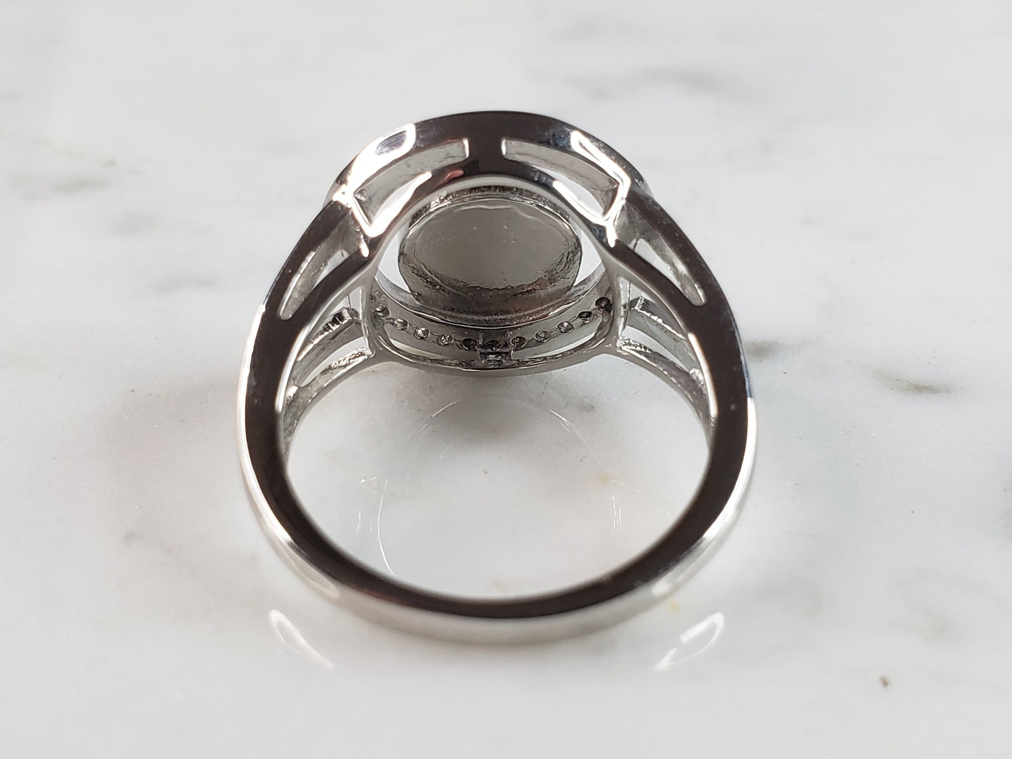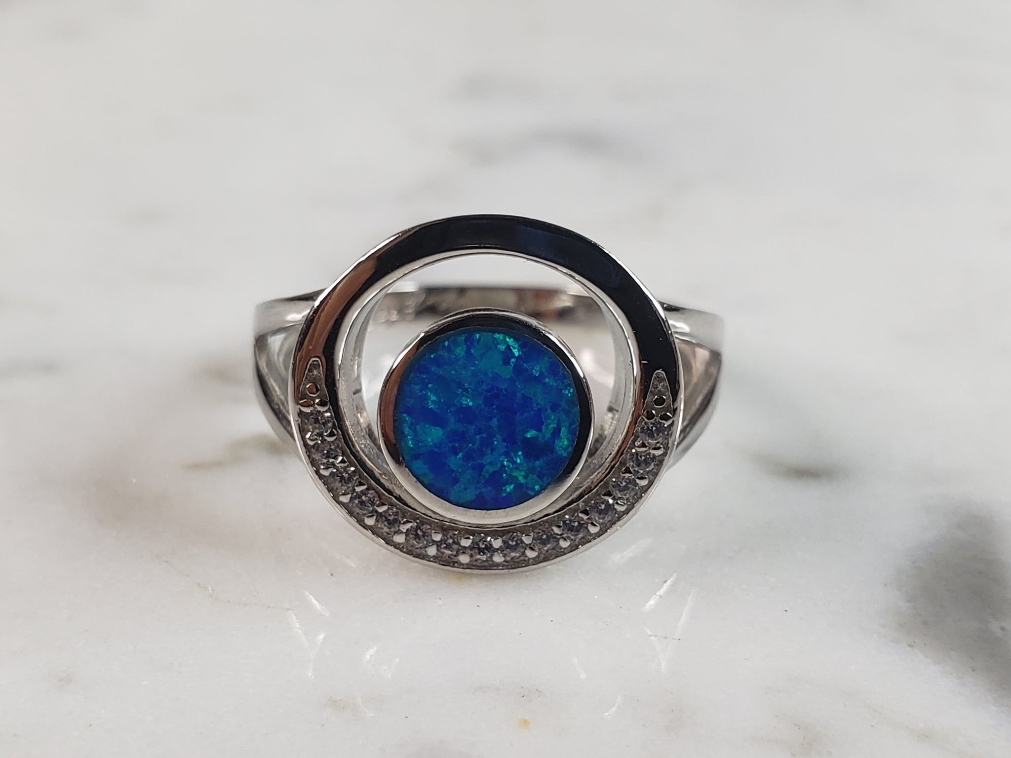 A WOMENS ESTATE STERLING SILVER MODERNIST BLUE OPAL COLORED RING. THE RING IS A SIZE 6.0 AND WEIGHS 3.8g. WIDTH OF RING MEASURES 5/8". NOT SURE IF STONE IS NATURAL OR MAN MADE. THE RING MAKES A BEAUTIFUL GIFT FOR THAT SOMEONE SPECIAL. ANY OTHER QUESTIONS, PLEASE ASK. BE SURE TO CHECK OUT SOME OF MY OTHER GREAT ITEMS UP FOR SALE. THANK YOU.
