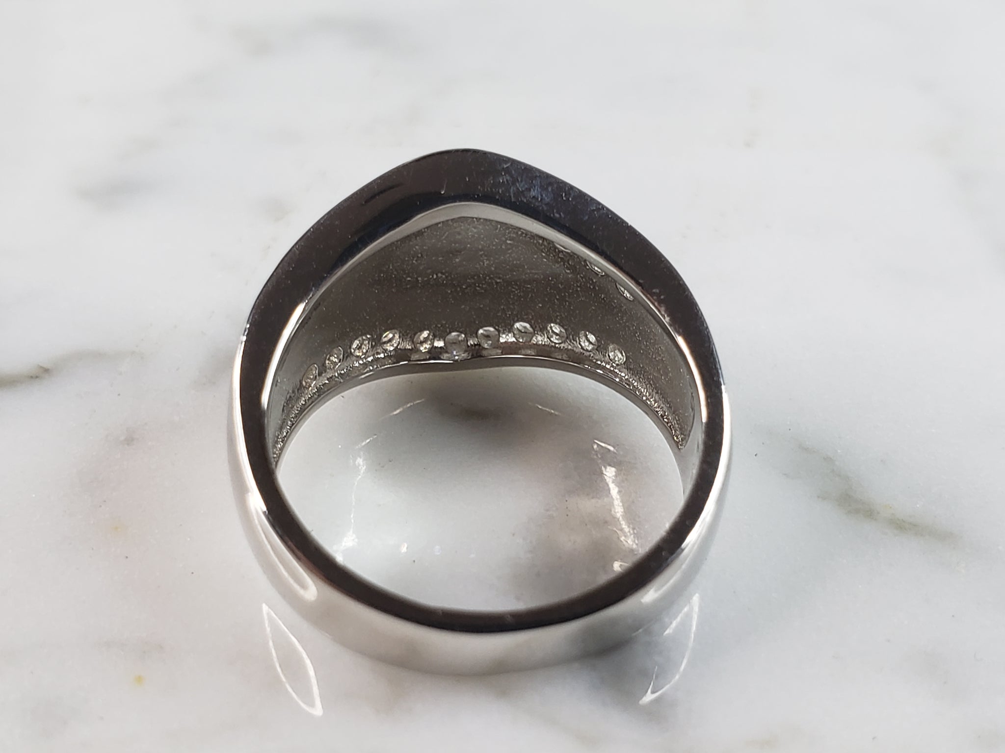 Womens Estate Sterling Silver Modernist Blue Opal & CZ Ring 5.7g E1410
