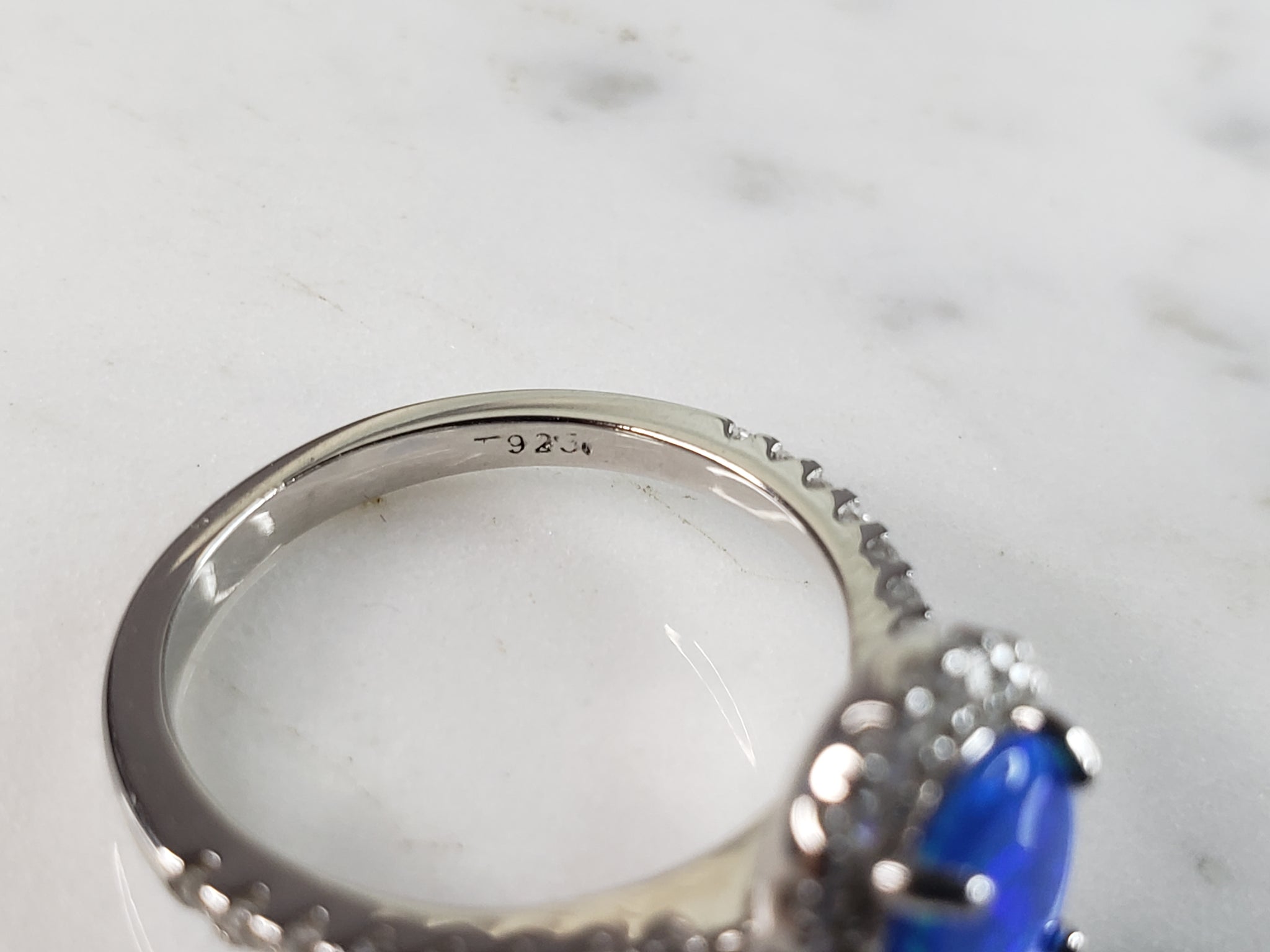 A WOMENS ESTATE STERLING SILVER MODERNIST BLUE OPAL COLORED RING SET. THE RING IS A SIZE 6.0 AND WEIGHS 4.6g. WIDTH OF RING MEASURES 1/2". NOT SURE IF STONE IS NATURAL OR MAN MADE. THE RING MAKES A BEAUTIFUL GIFT FOR THAT SOMEONE SPECIAL. ANY OTHER QUESTIONS, PLEASE ASK. BE SURE TO CHECK OUT SOME OF MY OTHER GREAT ITEMS UP FOR SALE. THANK YOU.