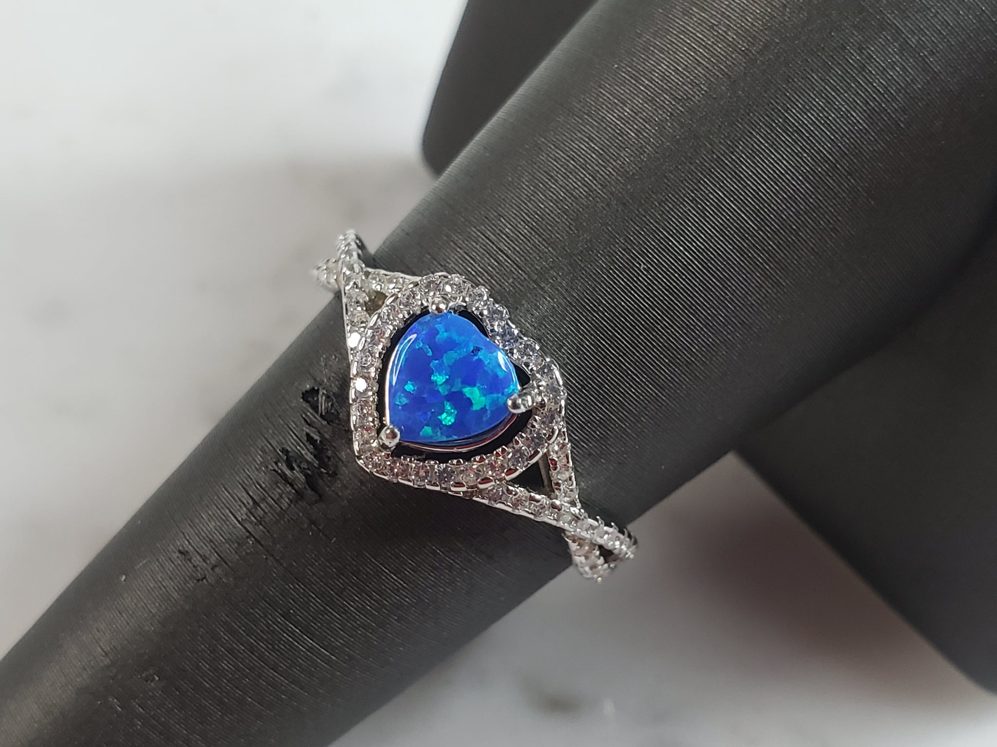 A WOMENS ESTATE STERLING SILVER MODERNIST OPAL COLORED HEART RING. THE RING IS A SIZE 8.0 AND WEIGHS 2.7g. NOT SURE IF STONE IS NATURAL OR MAN MADE. THE RING MAKES A BEAUTIFUL GIFT FOR THAT SOMEONE SPECIAL. ANY OTHER QUESTIONS, PLEASE ASK. BE SURE TO CHECK OUT SOME OF MY OTHER GREAT ITEMS UP FOR SALE. THANK YOU.