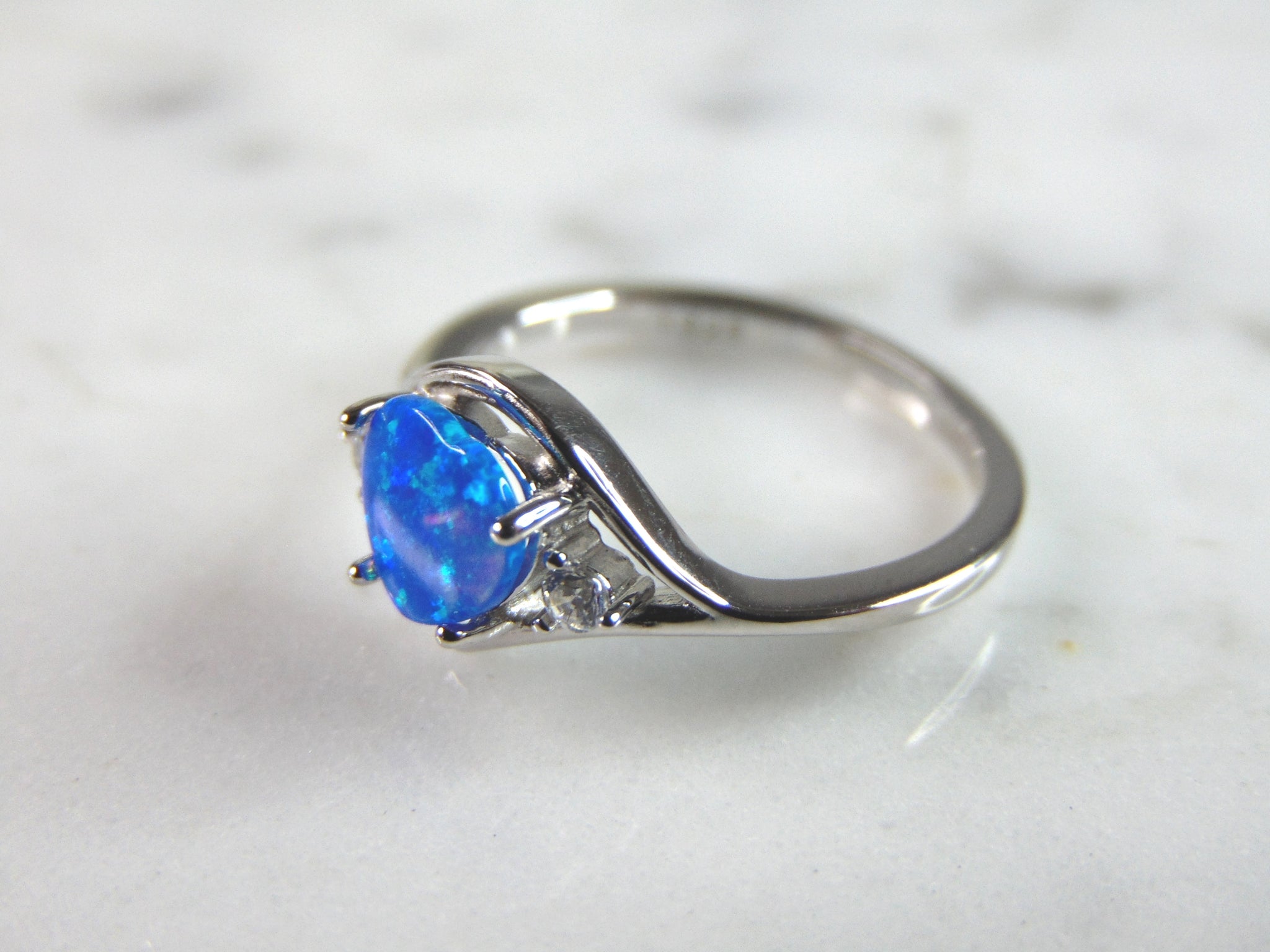 A WOMENS ESTATE STERLING SILVER MODERNIST OPAL COLORED RING. THE RING IS A SIZE 6.0 AND WEIGHS 1.9g. NOT SURE IF STONE IS NATURAL OR MAN MADE. THE RING MAKES A BEAUTIFUL GIFT FOR THAT SOMEONE SPECIAL. ANY OTHER QUESTIONS, PLEASE ASK. BE SURE TO CHECK OUT SOME OF MY OTHER GREAT ITEMS UP FOR SALE. THANK YOU.