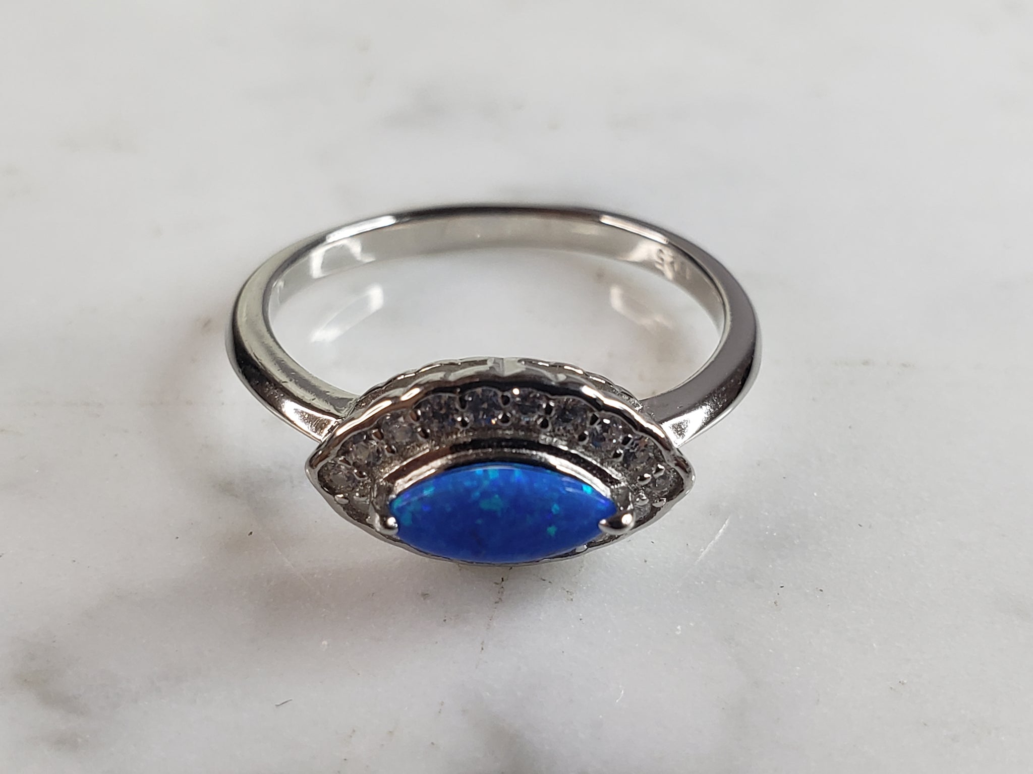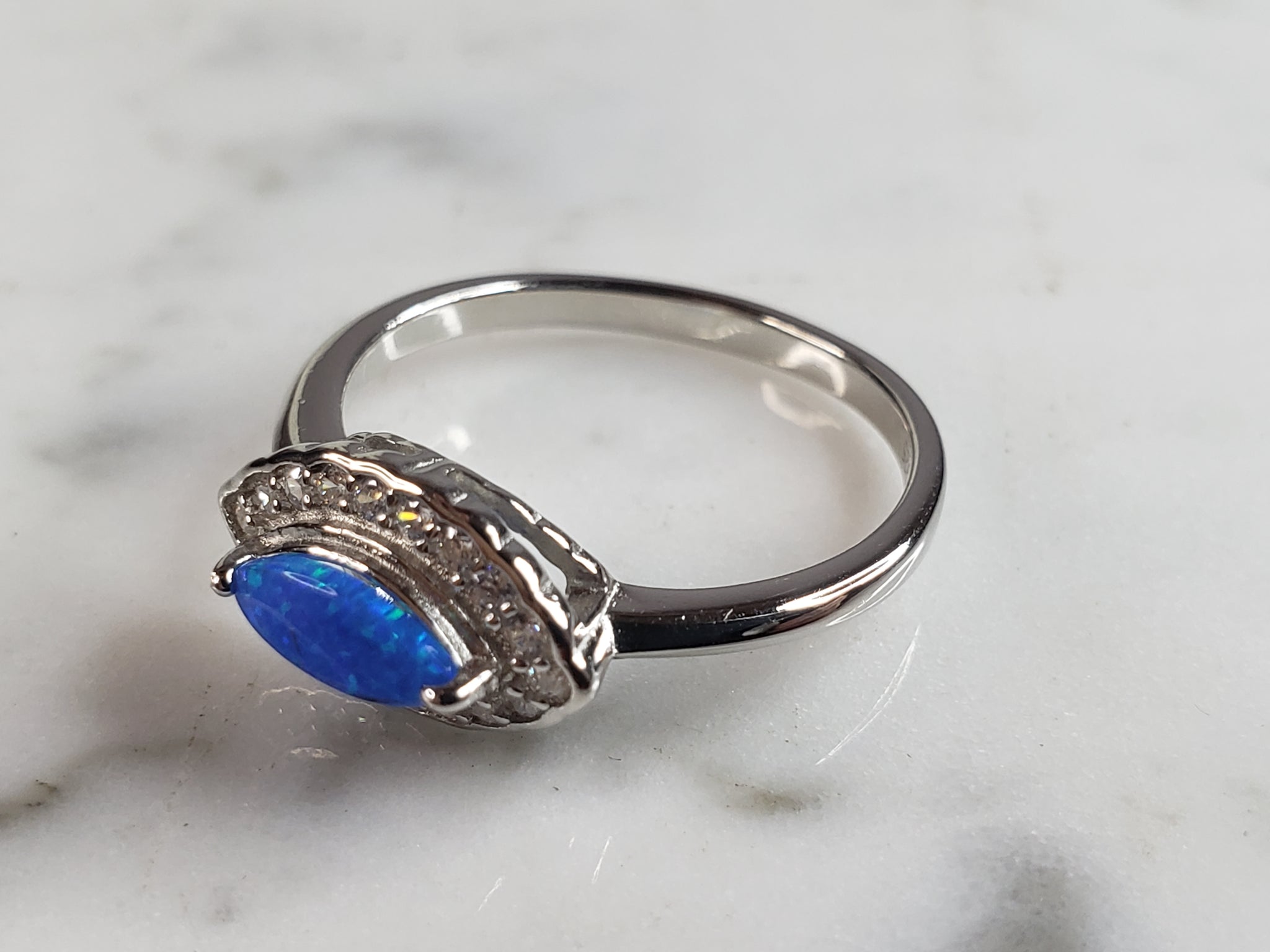 A WOMENS ESTATE STERLING SILVER MODERNIST OPAL COLORED RING. THE RING IS A SIZE 7.25 AND WEIGHS 2.7g. NOT SURE IF STONE IS NATURAL OR MAN MADE. THE RING MAKES A BEAUTIFUL GIFT FOR THAT SOMEONE SPECIAL. ANY QUESTIONS, PLEASE ASK. BE SURE TO CHECK OUT SOME OF MY OTHER GREAT ITEMS UP FOR SALE. THANK YOU.