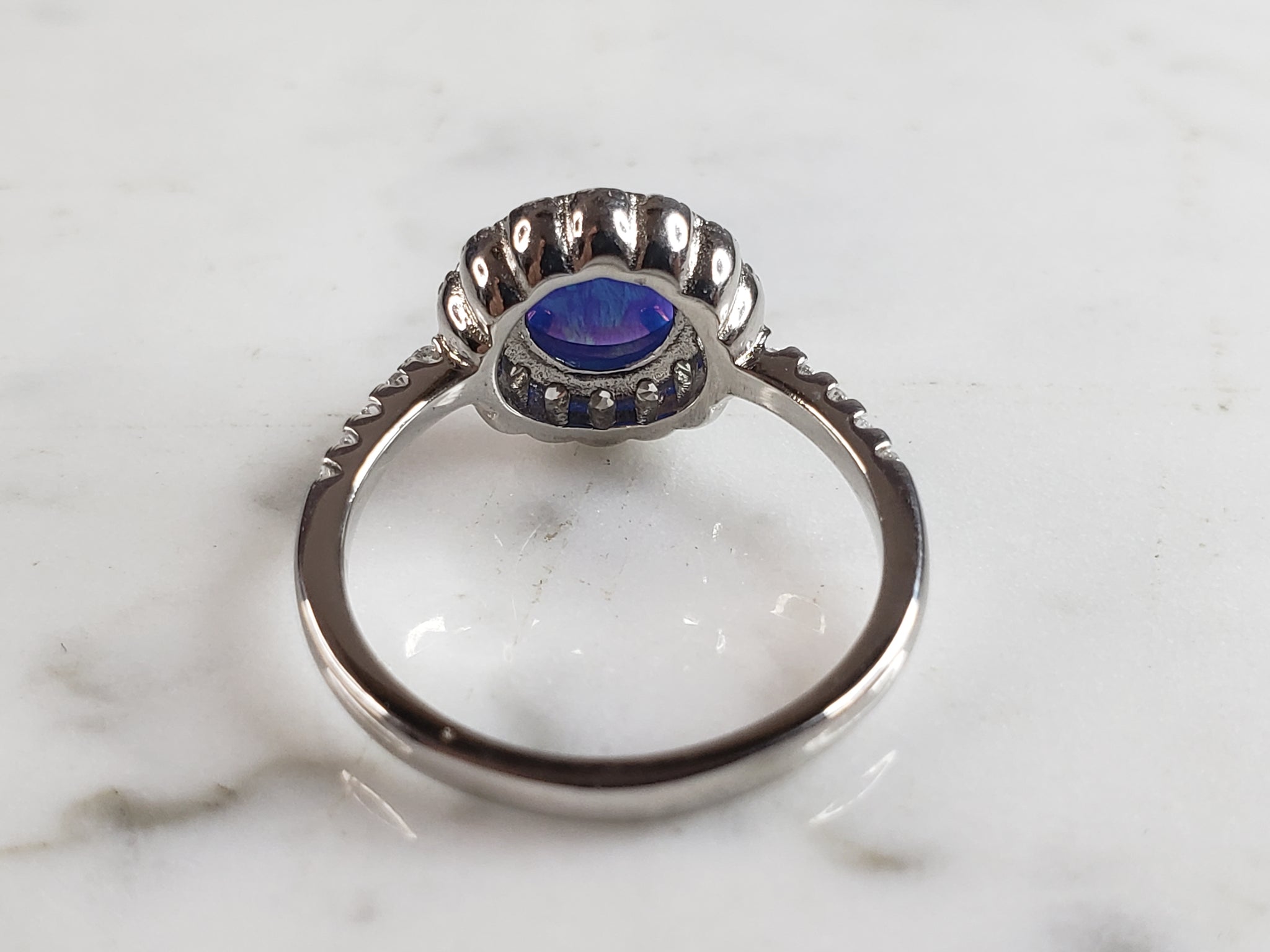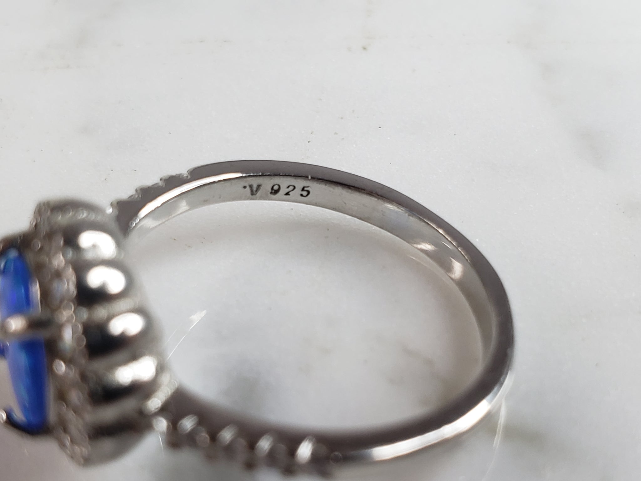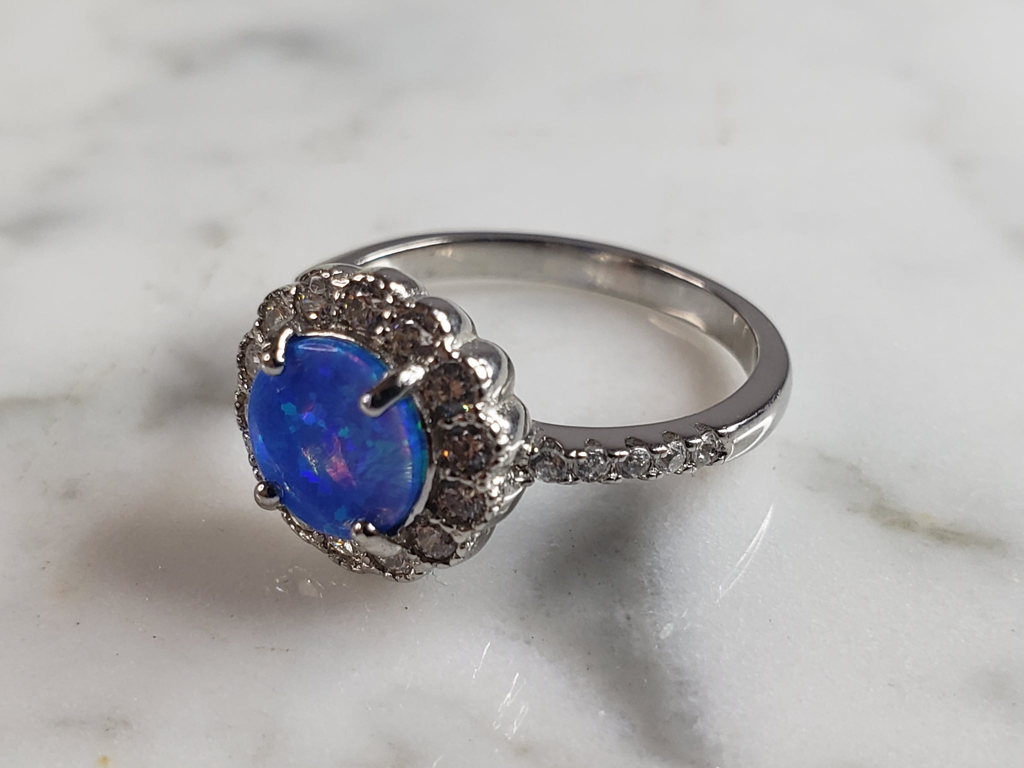 Womens Estate Sterling Silver Modernist Blue Opal Ring 3.2g E1712