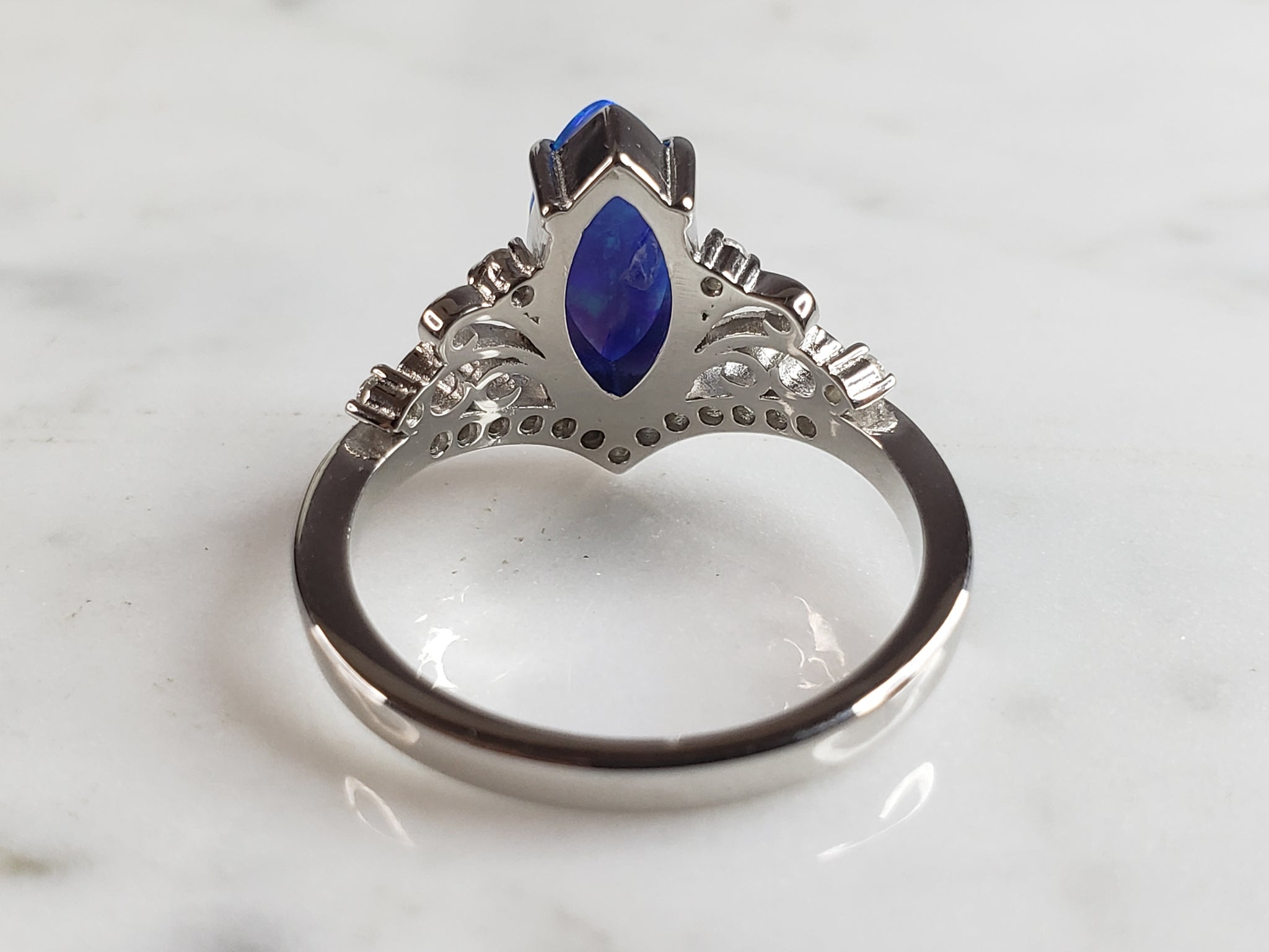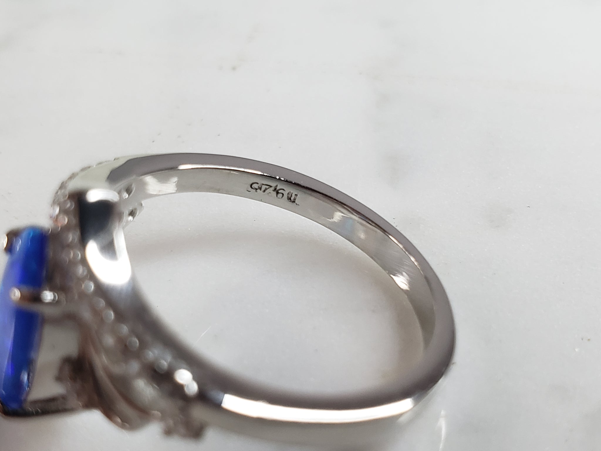 A WOMENS ESTATE STERLING SILVER MODERNIST OPAL COLORED RING. THE RING IS A SIZE 7.25 AND WEIGHS 3.4g. NOT SURE IF STONE IS NATURAL OR MAN MADE. THE RING MAKES A BEAUTIFUL GIFT FOR THAT SOMEONE SPECIAL. ANY QUESTIONS, PLEASE ASK. BE SURE TO CHECK OUT SOME OF MY OTHER GREAT ITEMS UP FOR SALE. THANK YOU.