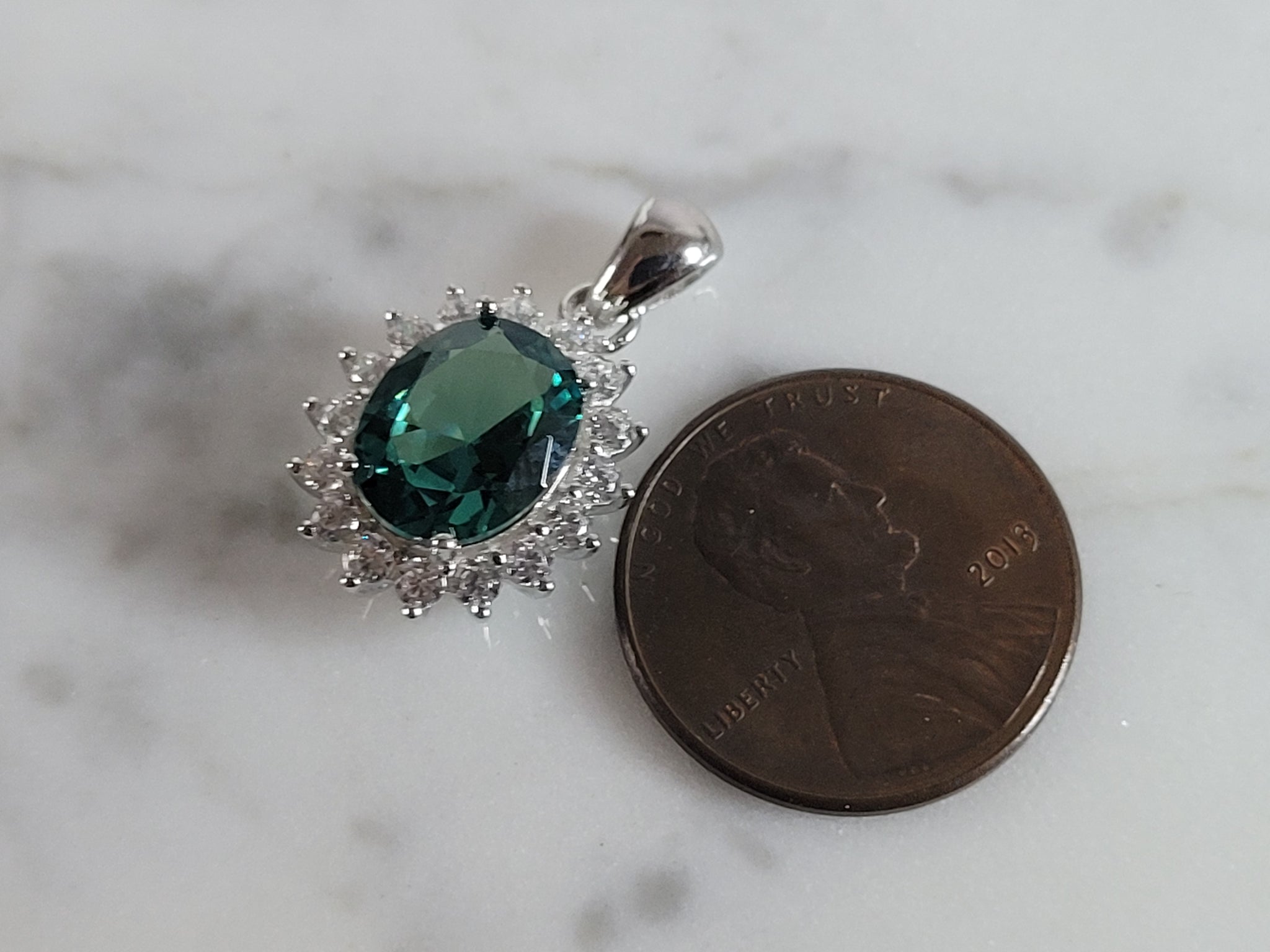 A WOMENS ESTATE STERLING SILVER MODERNIST CZ PENDANT WITH AN EMERALD COLORED STONE. PENDANT WEIGHS 2.5g AND MEASURES 7/8" LONG BY 1/2" WIDE. MAKES A GREAT GIFT FOR THAT SOMEONE SPECIAL. ANY QUESTIONS, PLEASE ASK. BE SURE TO CHECK OUT OUR OTHER ITEMS FOR SALE.