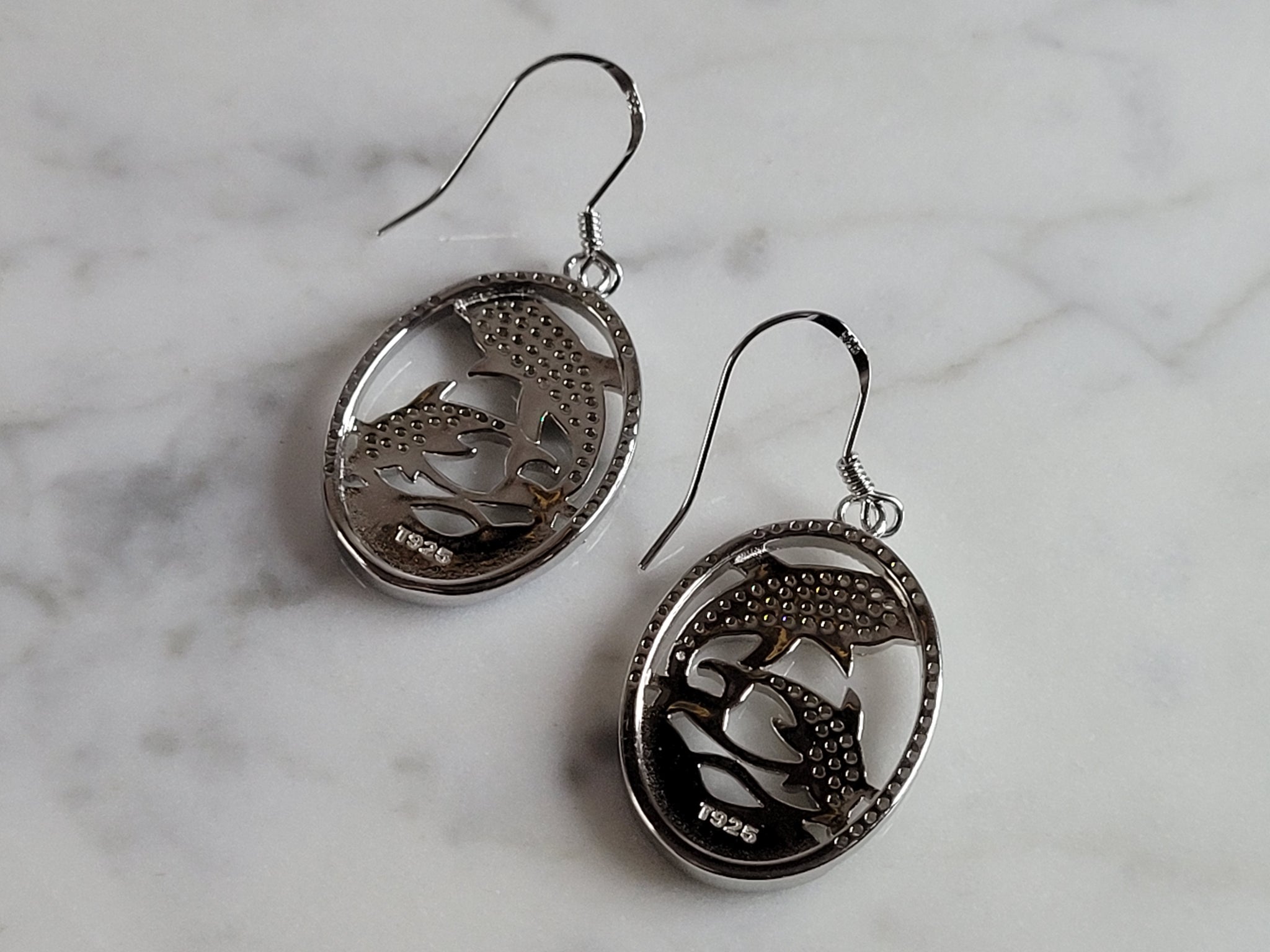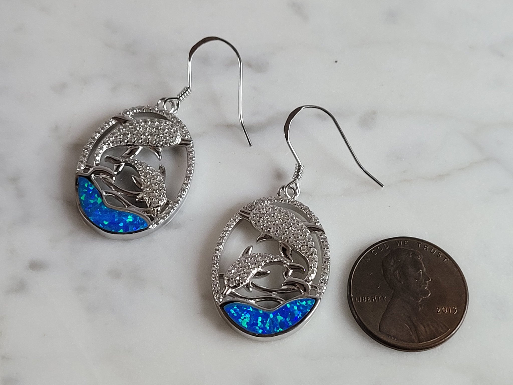 WOMENS ESTATE STERLING SILVER MODERNIST OPAL COLORED DOLPHIN EARRINGS THAT WEIGHS 8.6g AND MEASURES 1 1/2" LONG BY 3/4" WIDE. NOT SURE IF STONES ARE REAL OR MAN MADE. ANY OTHER QUESTIONS, PLEASE DO NOT HESITATE TO ASK. BE SURE TO CHECK OUT SOME OF MY OTHER GREAT ITEMS UP FOR SALE. THANK YOU