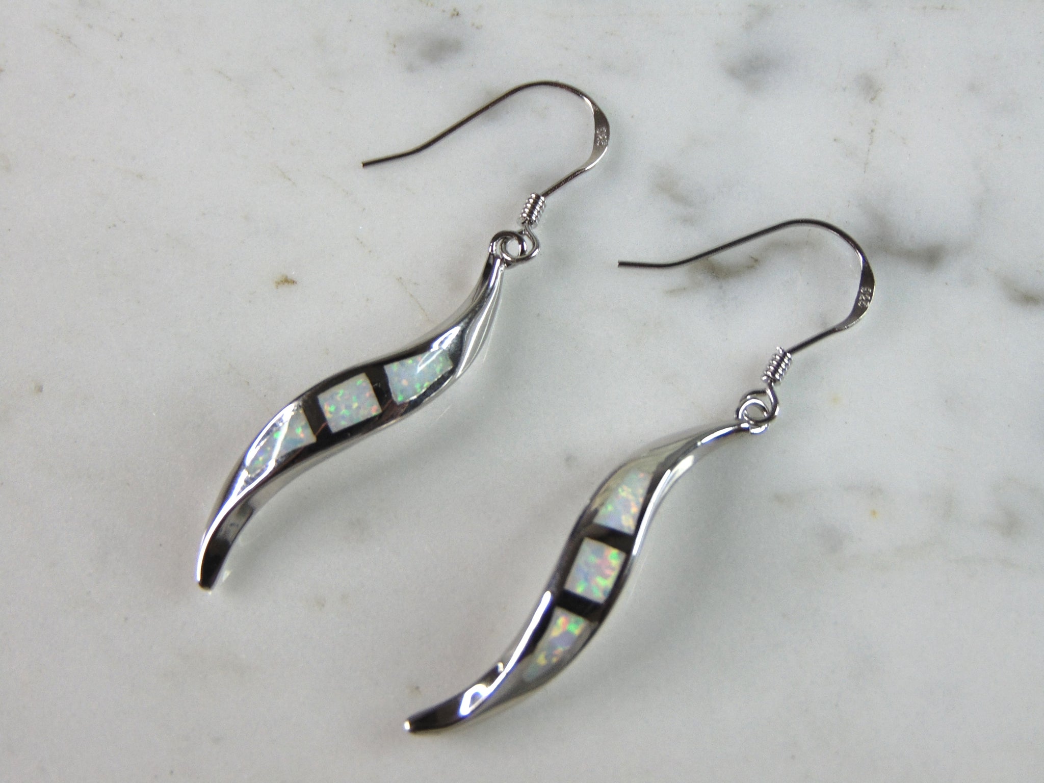 WOMENS ESTATE STERLING SILVER MODERNIST OPAL COLORED EARRINGS THAT WEIGH 4.2g. EARRINGS MEASURE 1 3/4" LONG BY 1/4" WIDE. NOT SURE IF STONES ARE REAL OR MAN MADE. ANY QUESTIONS, PLEASE DO NOT HESITATE TO ASK. BE SURE TO CHECK OUT SOME OF MY OTHER GREAT ITEMS UP FOR SALE. THANK YOU.
